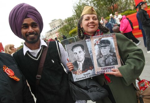 Горожане и гости столицы во время празднования 80-й годовщины Победы в Великой От...
