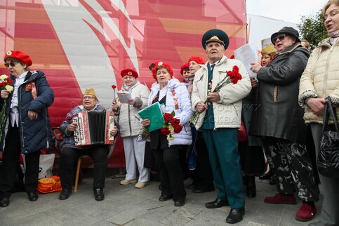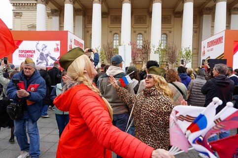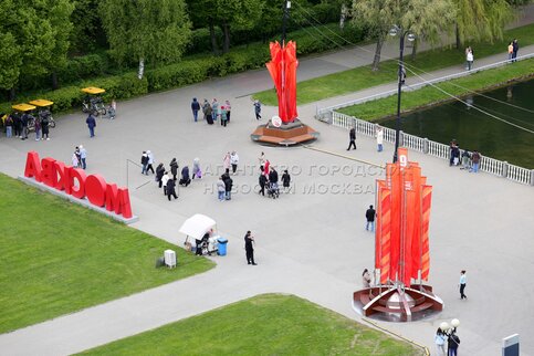 • Описание: Горожане и гости столицы в Александровском саду во время празднования 80-й годовщины Победы в Великой Отечественной войне.
