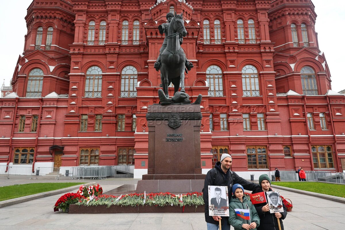 Горожане и гости столицы у памятника маршалу Жукову во время празднования 80-й го...