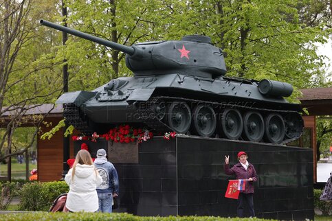 Танк на мемориальном комплексе «Площадь Мужества». Празднование 80-й годовщины По...