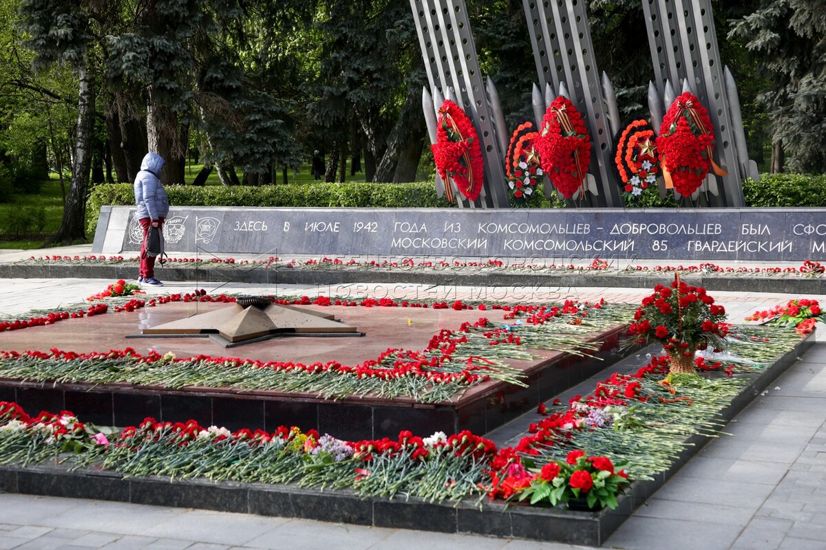 Цветы у Вечного огня в Александровском саду во время празднования 80-й годовщины ...