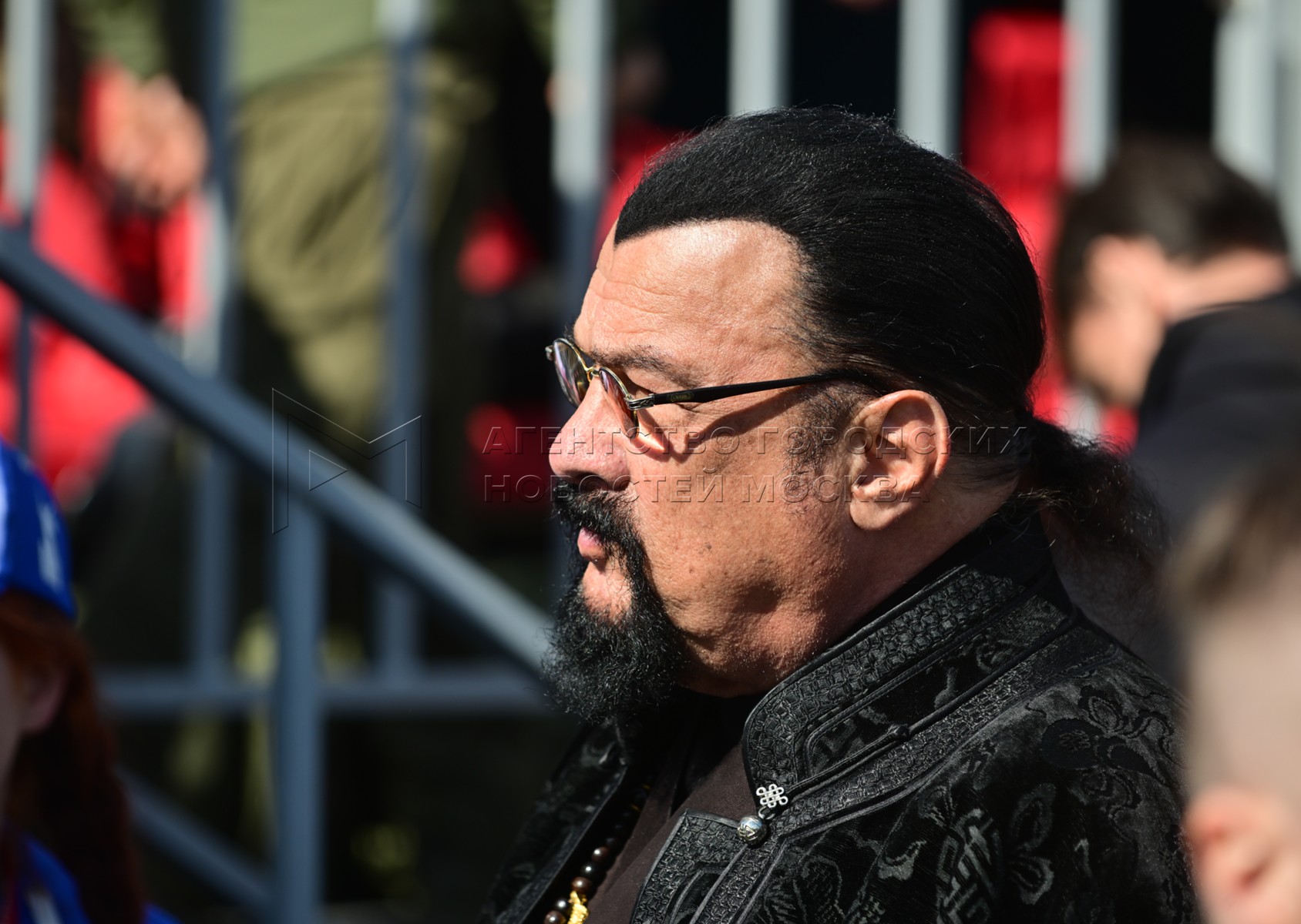 Специальный представитель МИД России по вопросам российско-американских гуманитарных отношений, актер, кинопродюсер Стивен Сигал. Парад в честь 80-й годовщины Победы в Великой Отечественной войне на Красной площади.