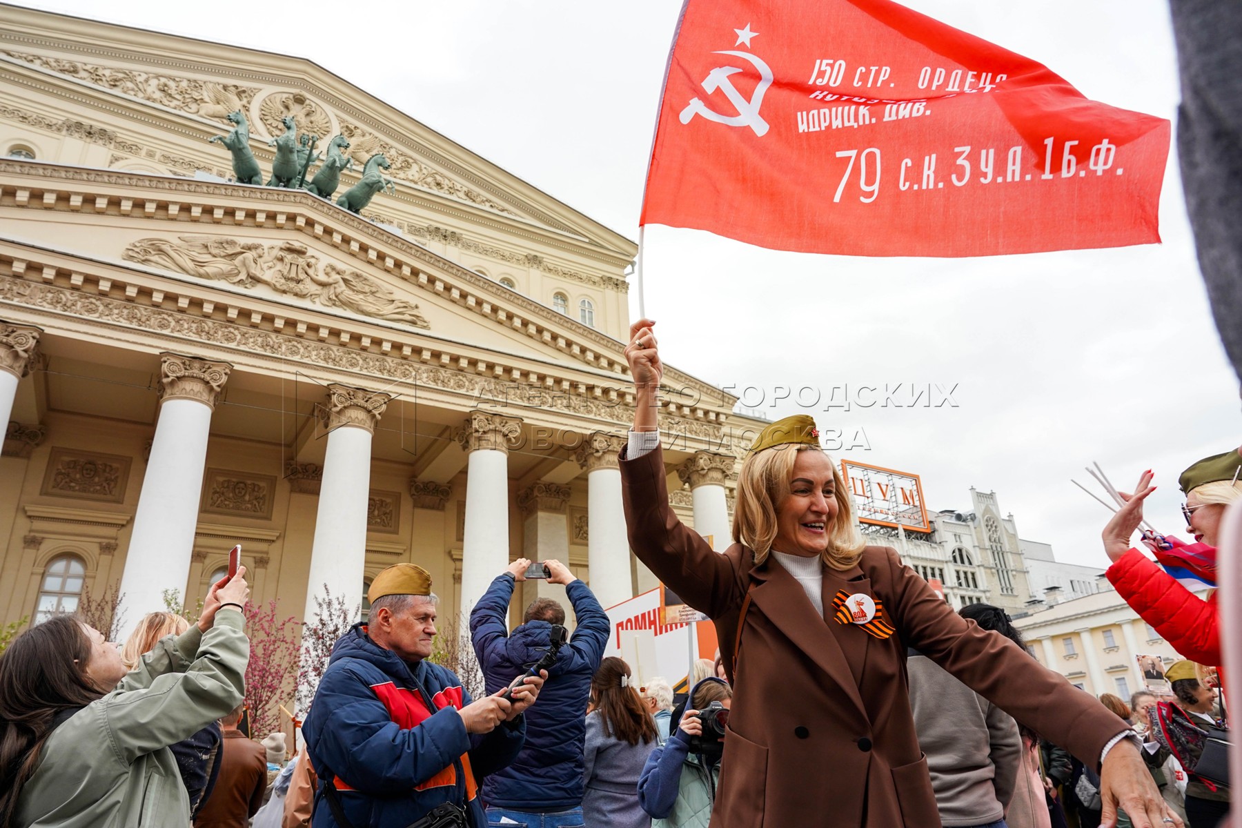 • Описание: Горожане и гости столицы на Театральной площади во время празднования 80-й годовщины Победы в Великой Отечественной войне.