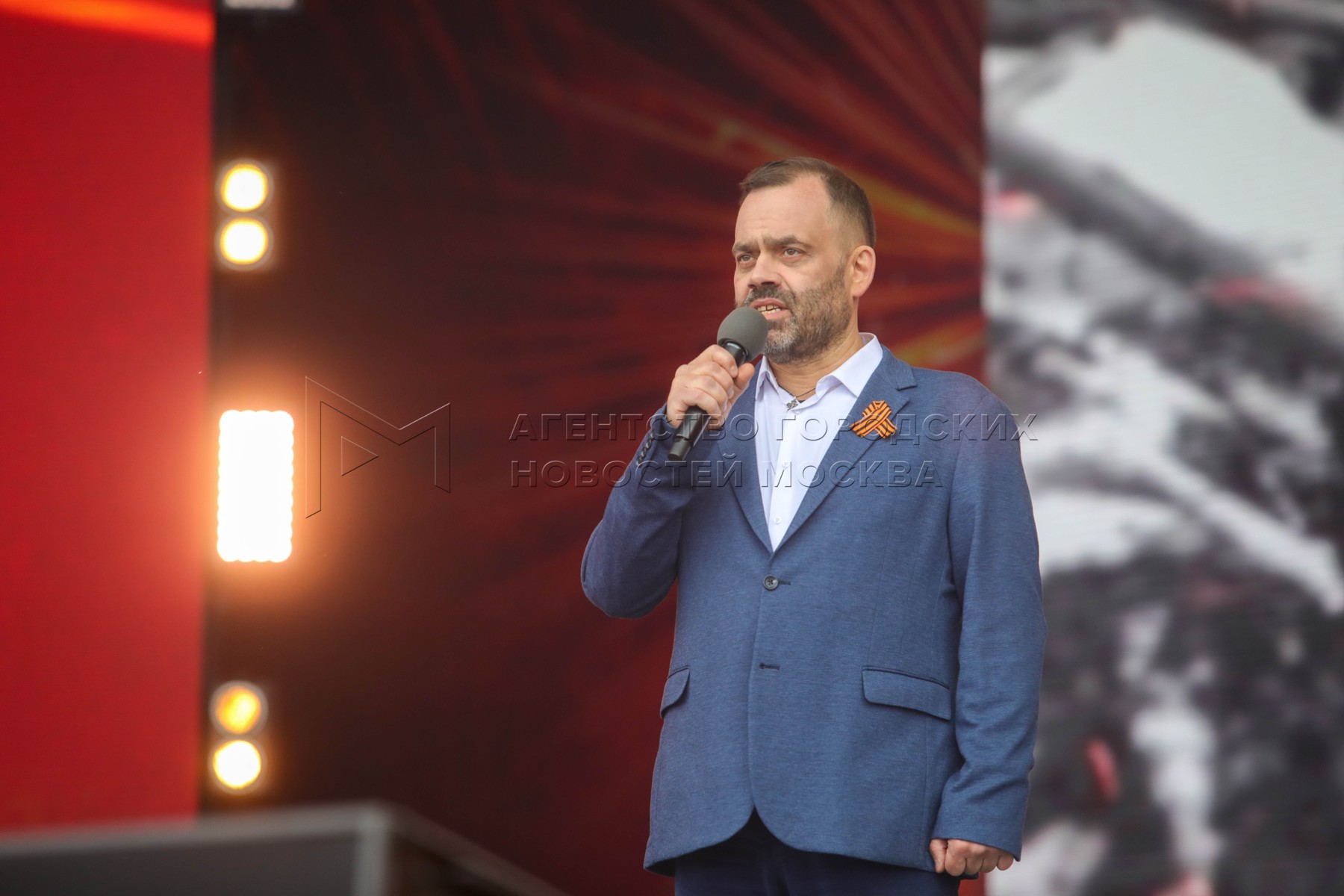 Автор-исполнитель Алексей Хвацкий на концертной программе «Песни Победы. Голоса поколений», подготовленная командой движения Олега Газманова «Родники».Празднование 80-летия Великой Победы на Поклонной горе.
