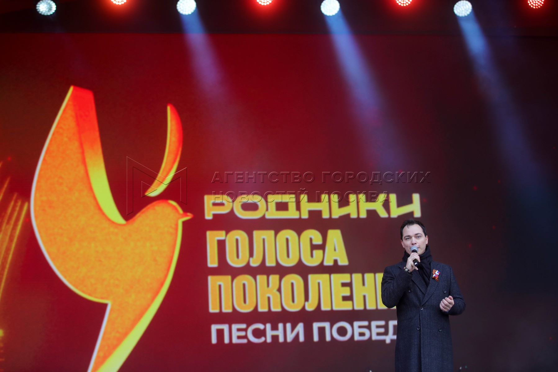 Родион Газманов в концертной программе «Песни Победы. Голоса поколений», подготовленная командой движения Олега Газманова «Родники». Празднование 80-летия Великой Победы на Поклонной горе.