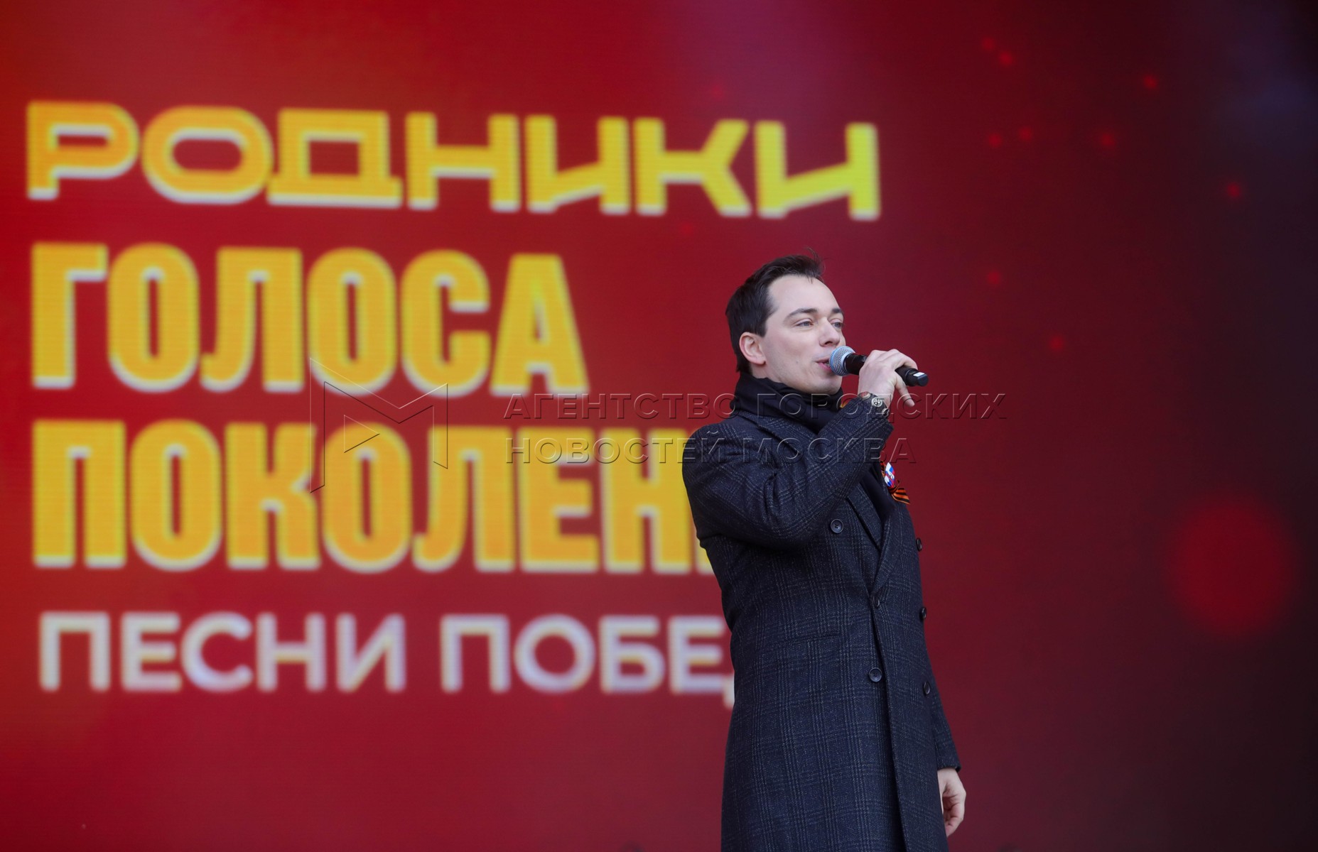 Родион Газманов в концертной программе «Песни Победы. Голоса поколений», подготовленная командой движения Олега Газманова «Родники». Празднование 80-летия Великой Победы на Поклонной горе.