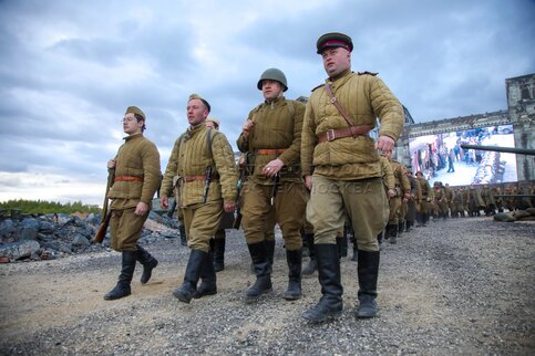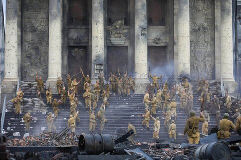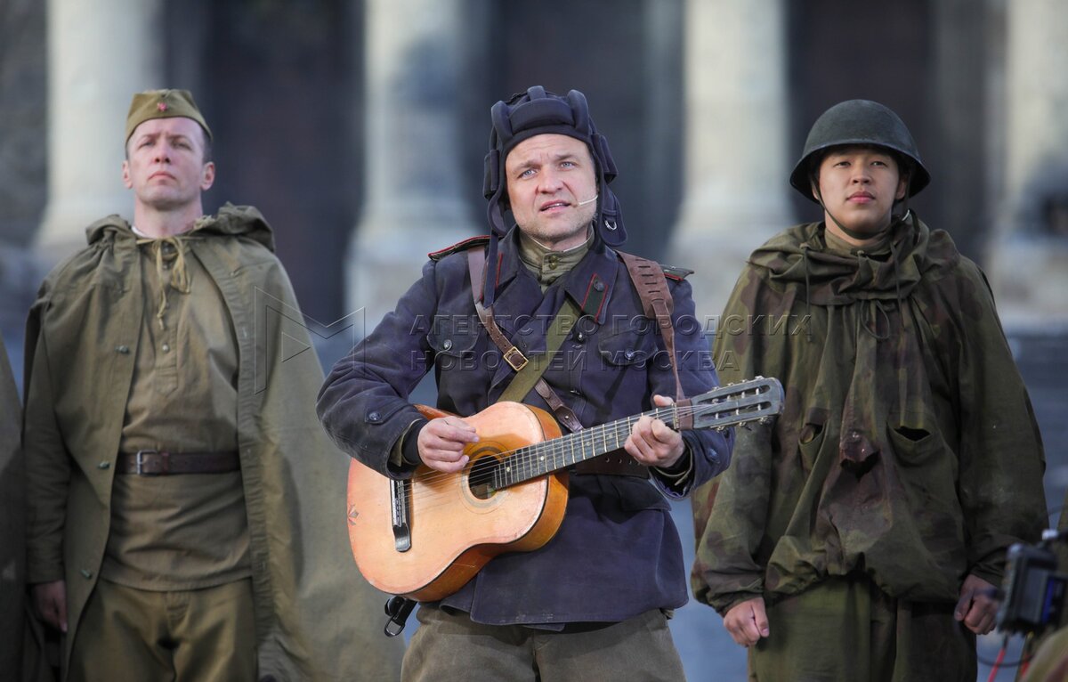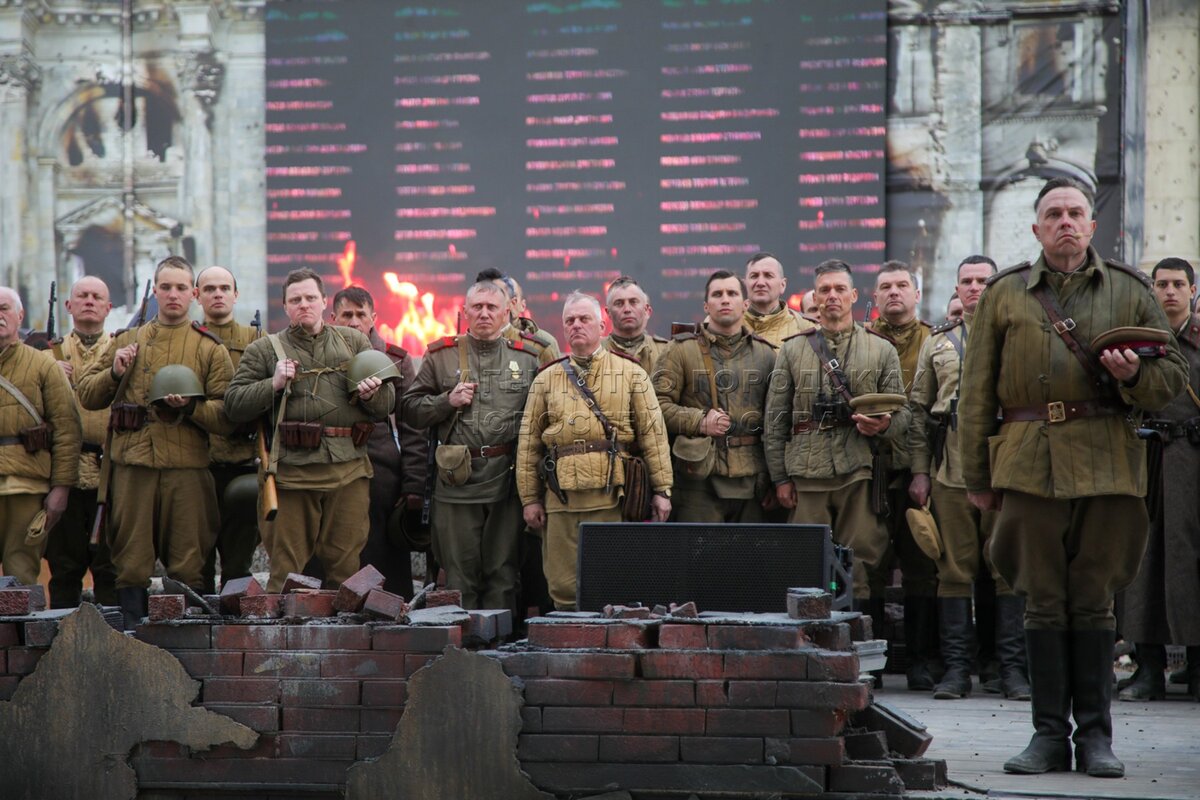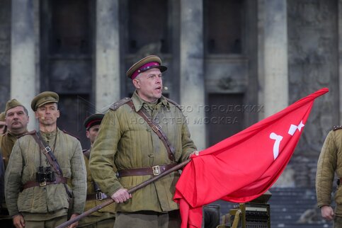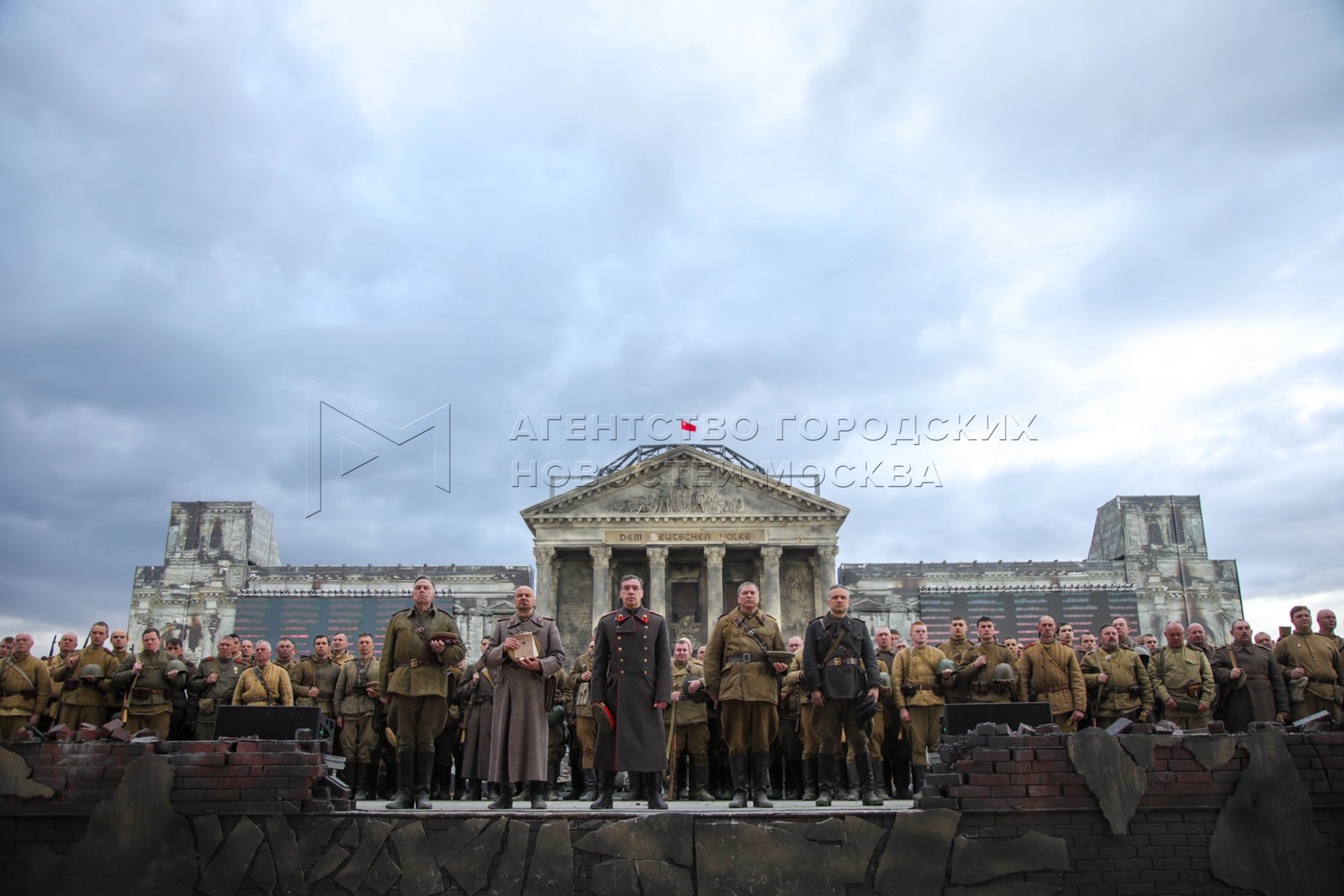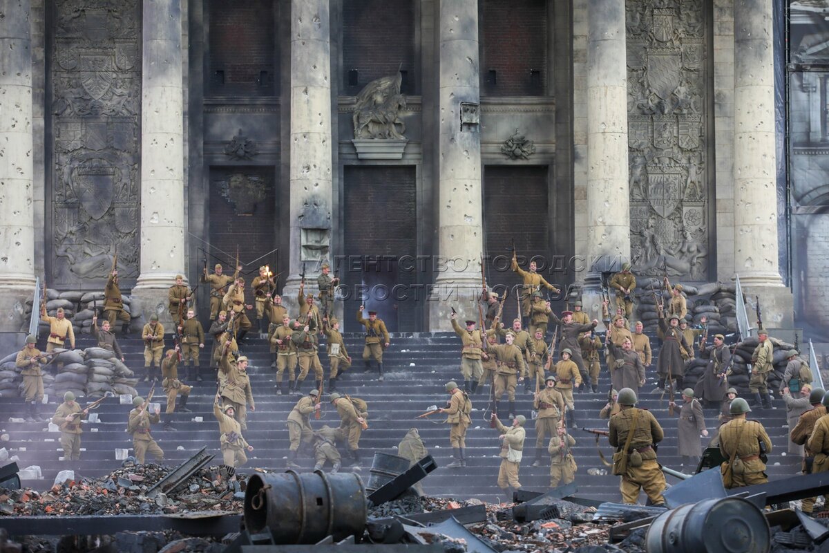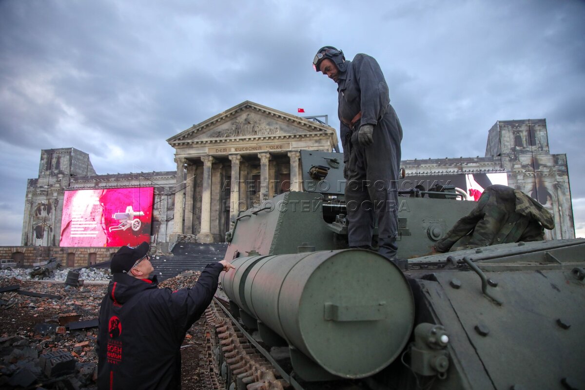 - Описание: Сербский режиссер, актер и сценарист Эмир Кустурица (слева) посетил иммерсивную постановку Игоря Угольникова «Победа! Знамя над Рейхстагом» в кинопарке «Москино». Зрители увидели детализированную реконструкцию штурма Рейхстага советскими войсками и водружение Знамени Победы.
