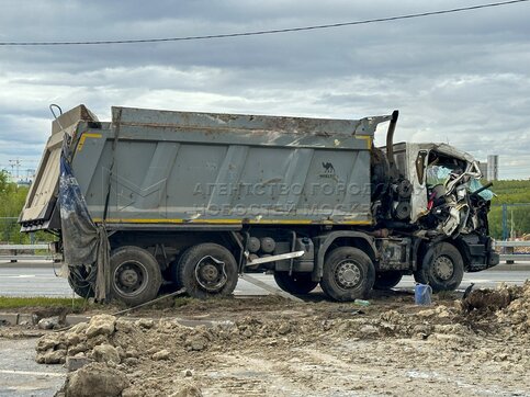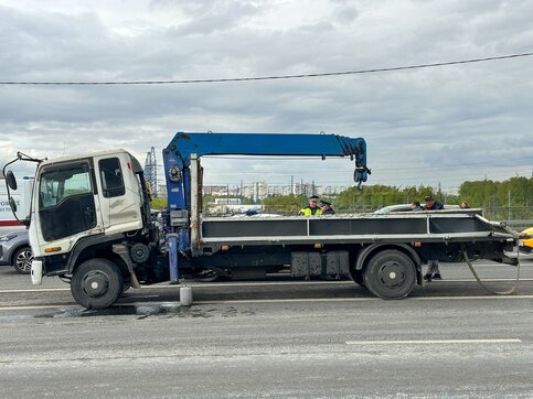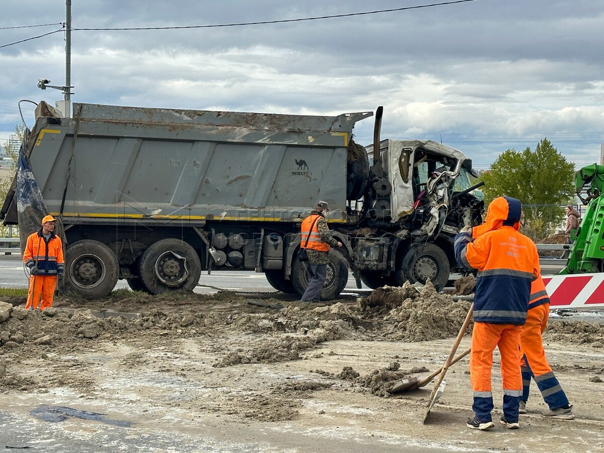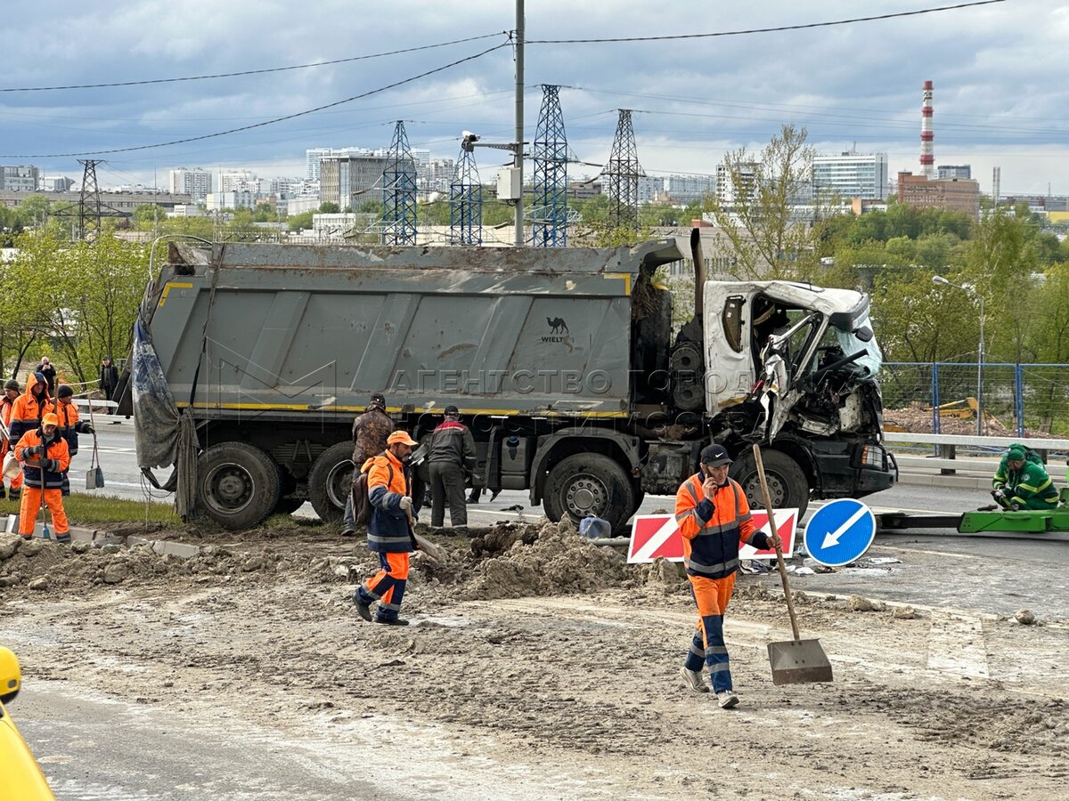 • Заголовок: Последствия ДТП с участием самосвала и грузовика-манипулятора на Покровском путепроводе