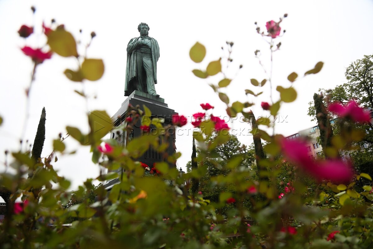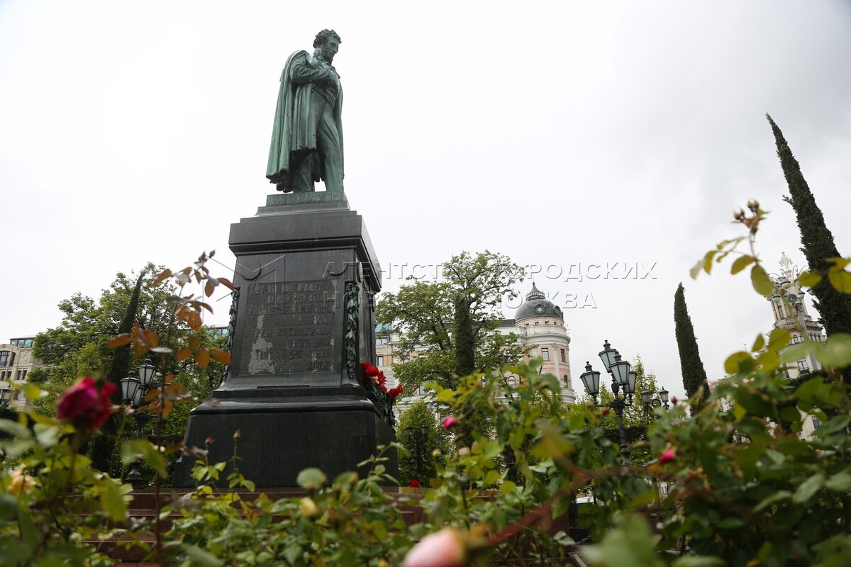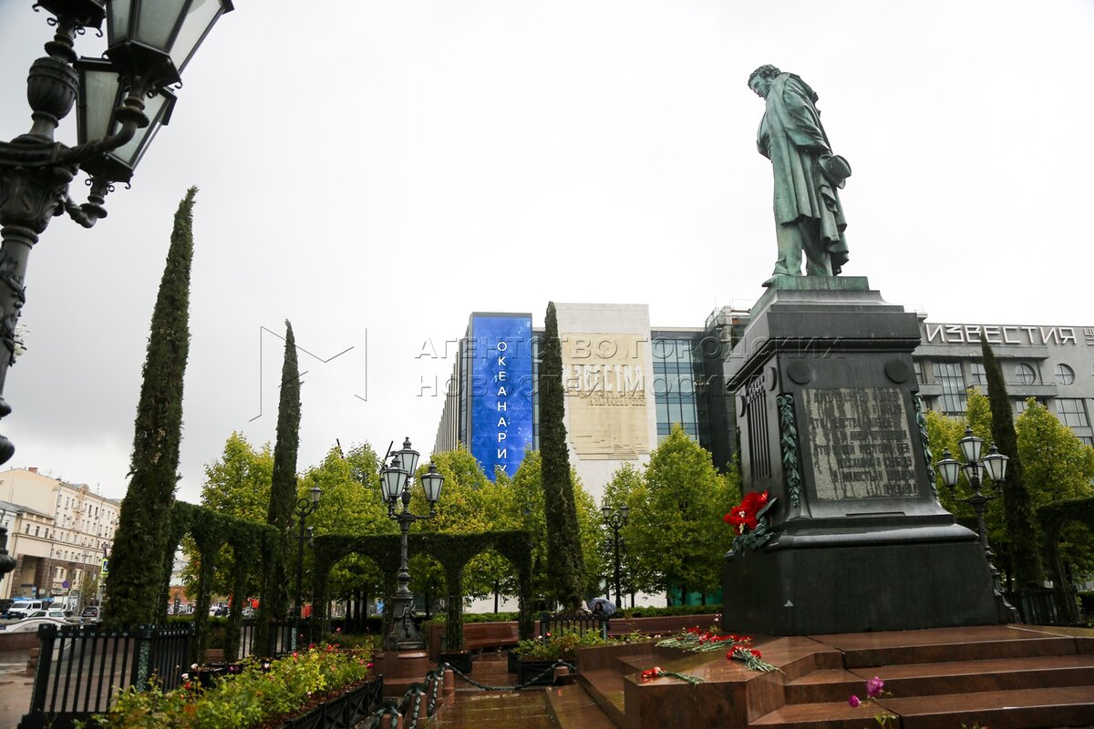 Памятник А. С. Пушкину на Пушкинской площади. Украшение центра столицы к фестивал...