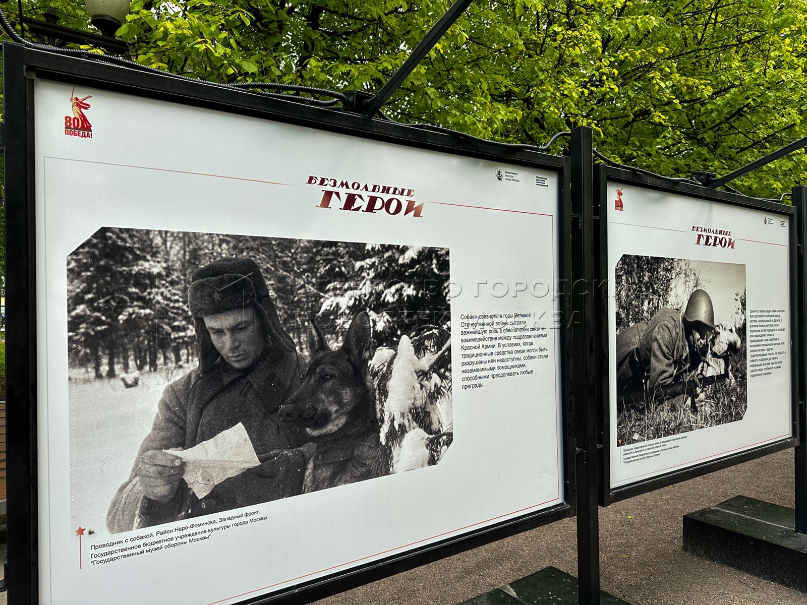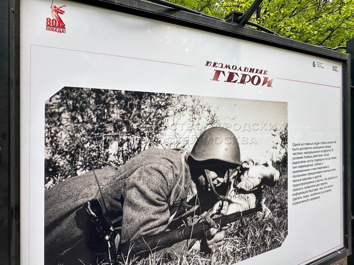 • Описание: Фотовыставка «Безмолвные герои» на Цветном бульваре, посвященная собакам и лошадям на фронте и в тылу Великой Отечественной войны.