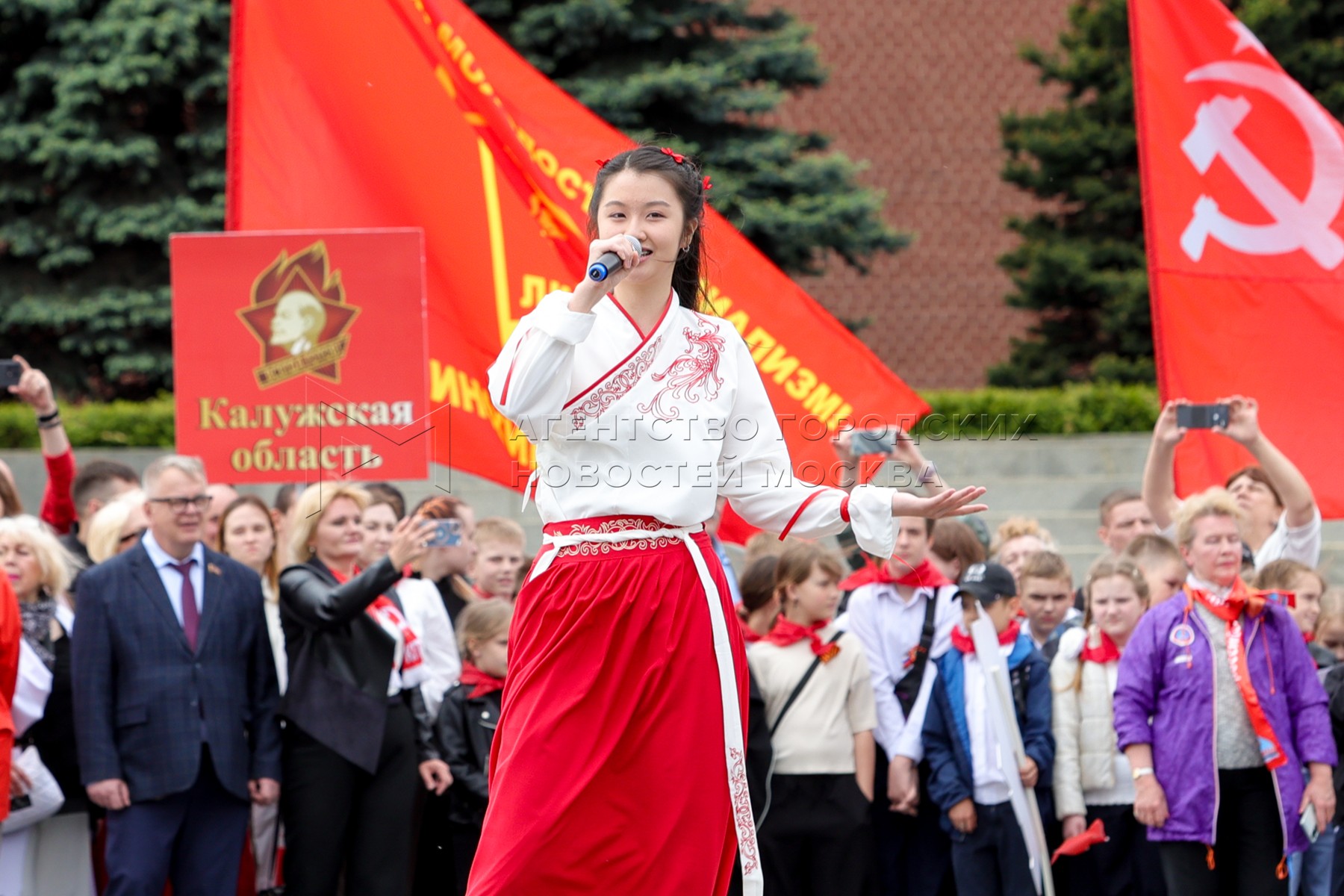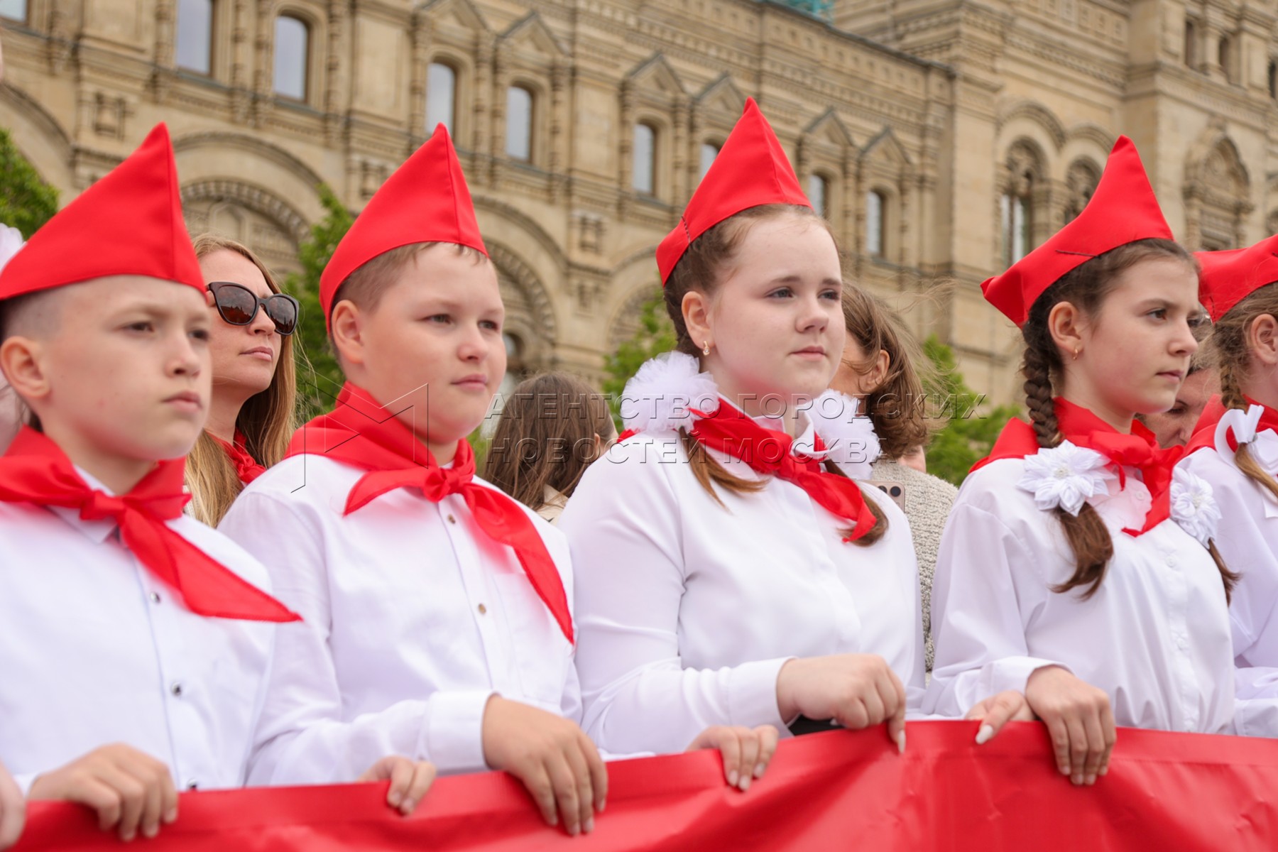 - Описание: Торжественная линейка и церемония приема в пионеры на Красной площади школьников из Москвы, Московской области и регионов Центрального федерального округа в честь 103-й годовщины создания Всесоюзной пионерской организации имени Ленина.