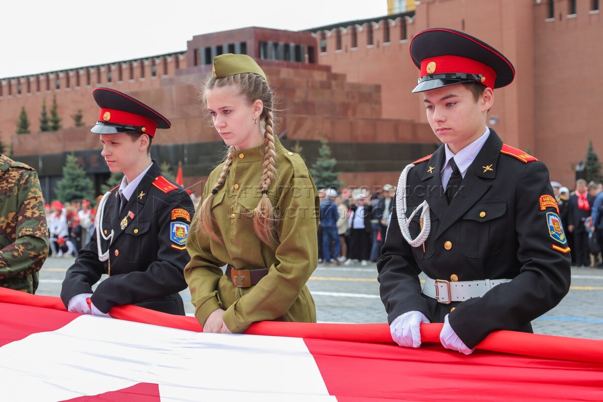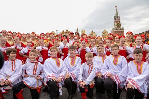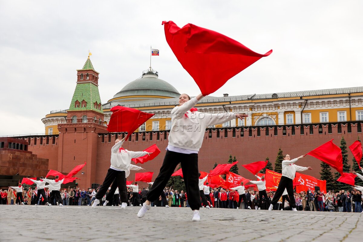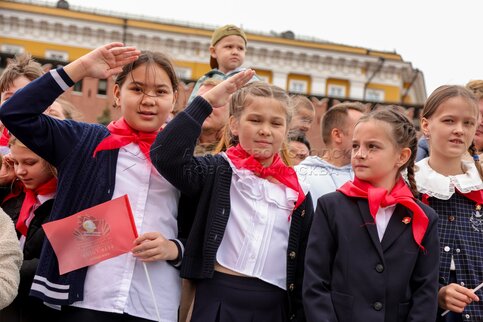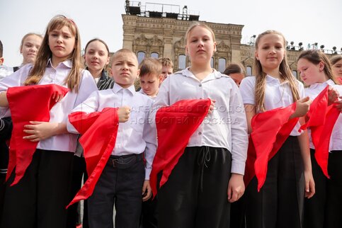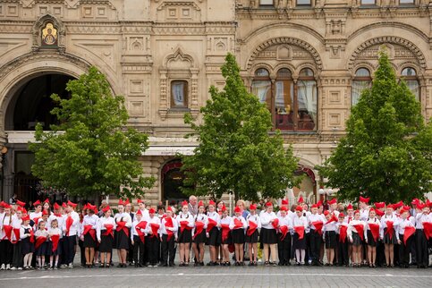 - Описание: Торжественная линейка и церемония приема в пионеры на Красной площади школьников из Москвы, Московской области и регионов Центрального федерального округа в честь 103-й годовщины создания Всесоюзной пионерской организации имени Ленина.