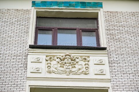 - Описание: Фрагмент фасада Дома купцов Грибовых (ул. Чаплыгина). Пешеходная экскурсия «Театральные истории Чистых прудов: от Пушкина до «Современника» – авторская прогулка по переулкам старой Москвы.