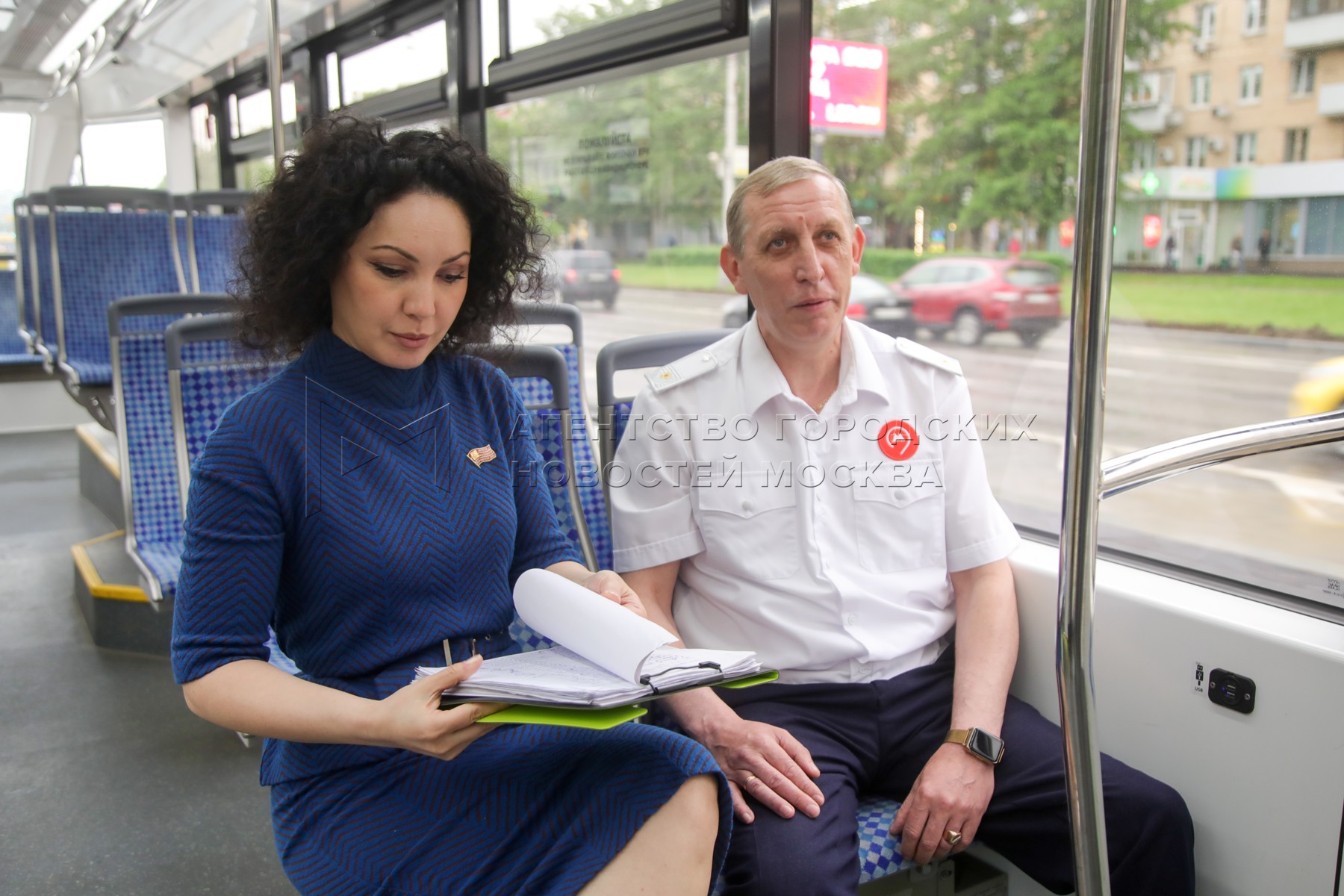 Руководитель общественной организации «Центр добрых дел», председатель комиссии Мосгордумы по транспорту и развитию дорожно-транспортной инфраструктуры Сабина Цветкова во время запуска в трамвайном депо имени Русакова трех дополнительных трамваев на маршрут №46 «Метрогородок – МЦД «Калитники» по просьбам москвичей.