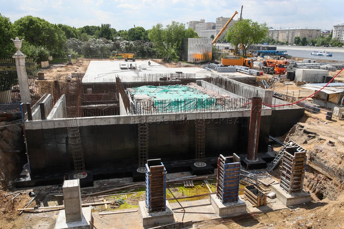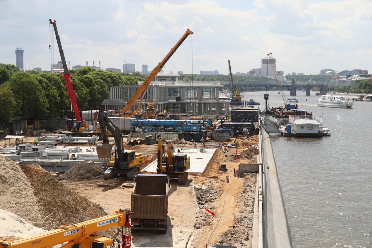 • Описание: В Парке Горького продолжается благоустройство Пушкинской набережной.