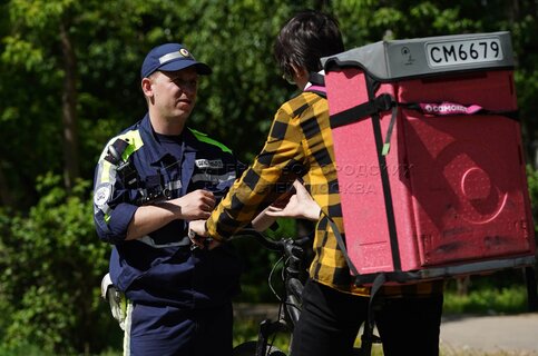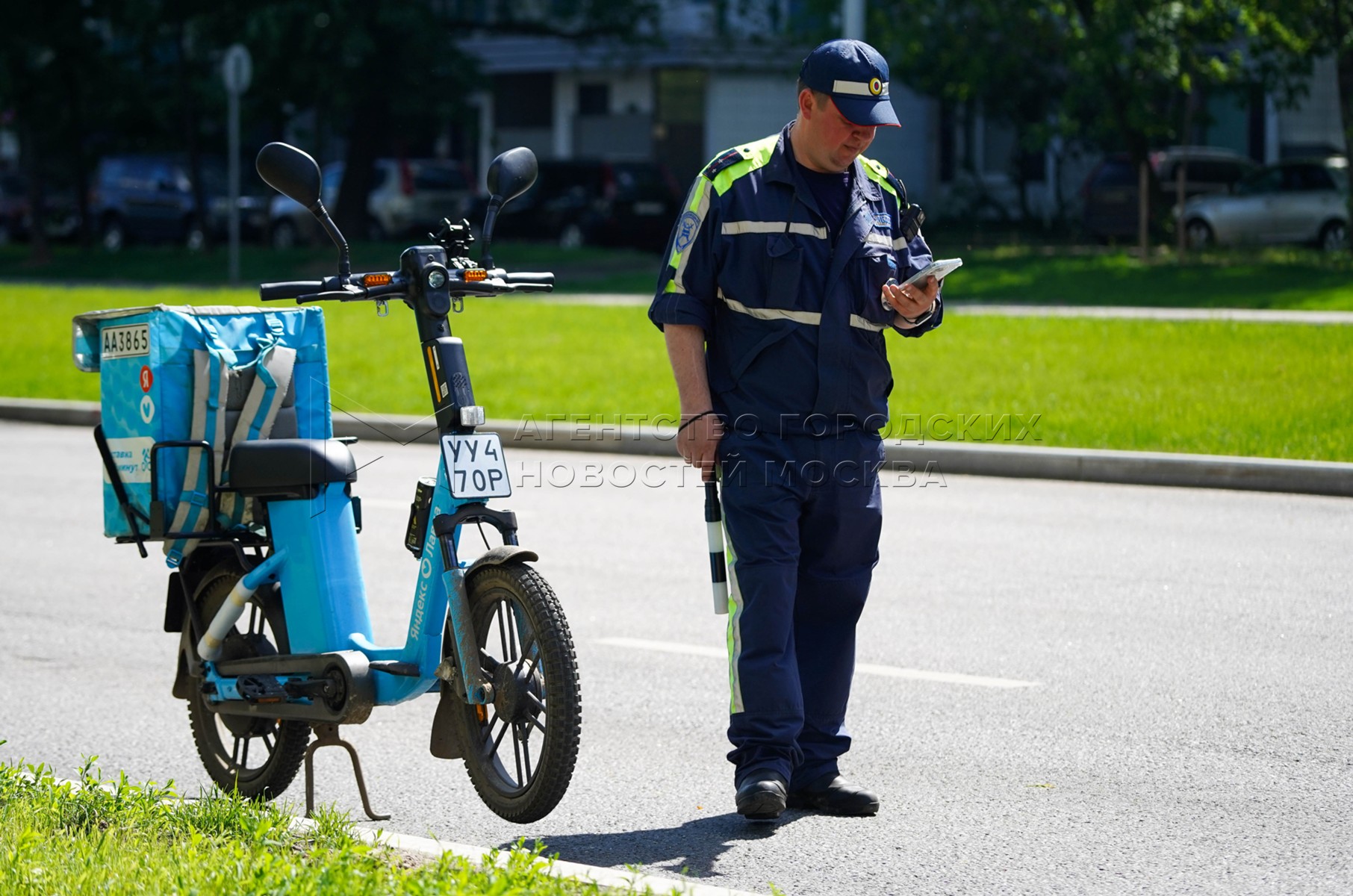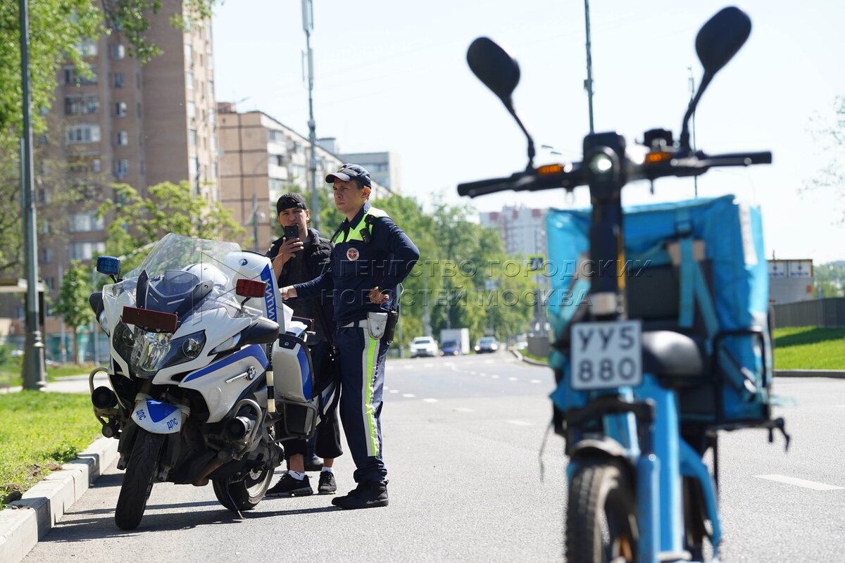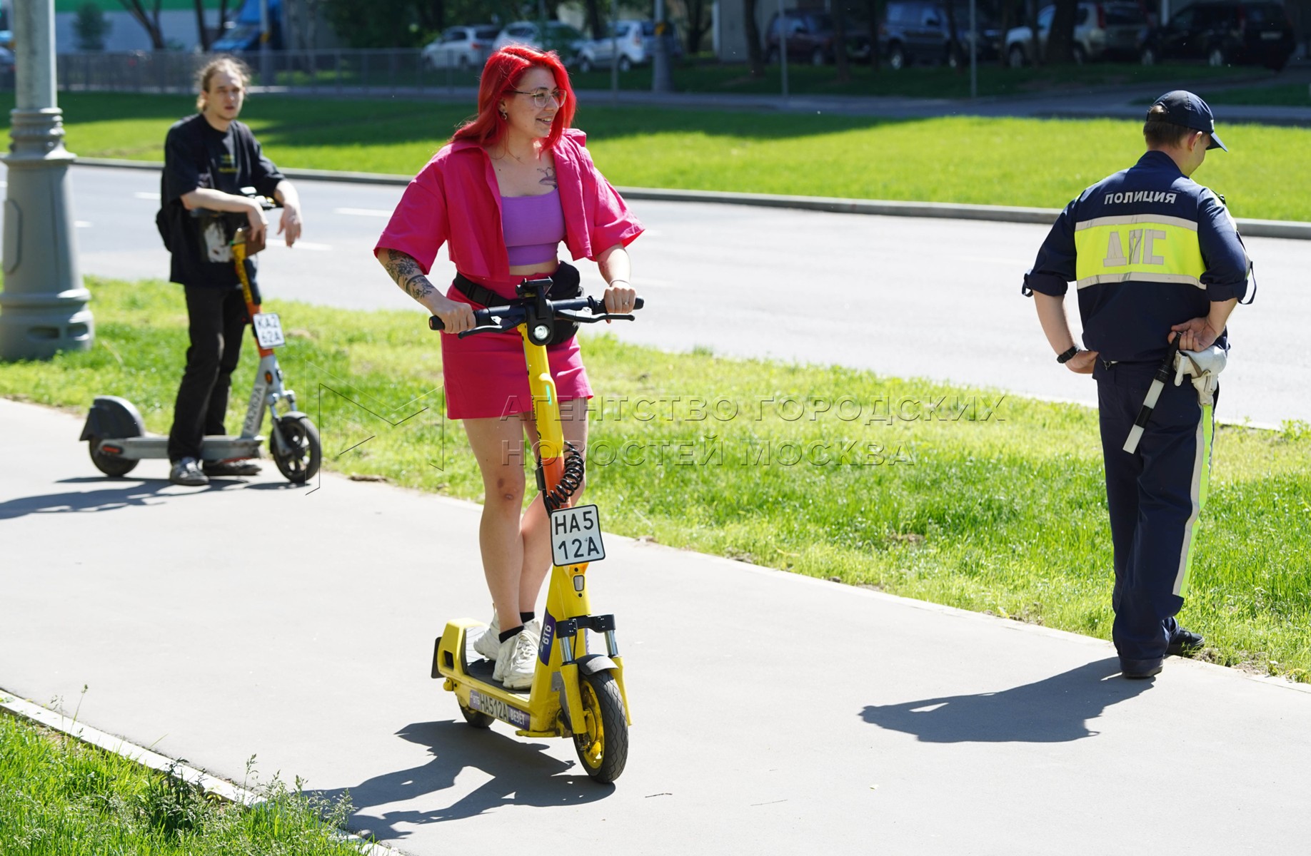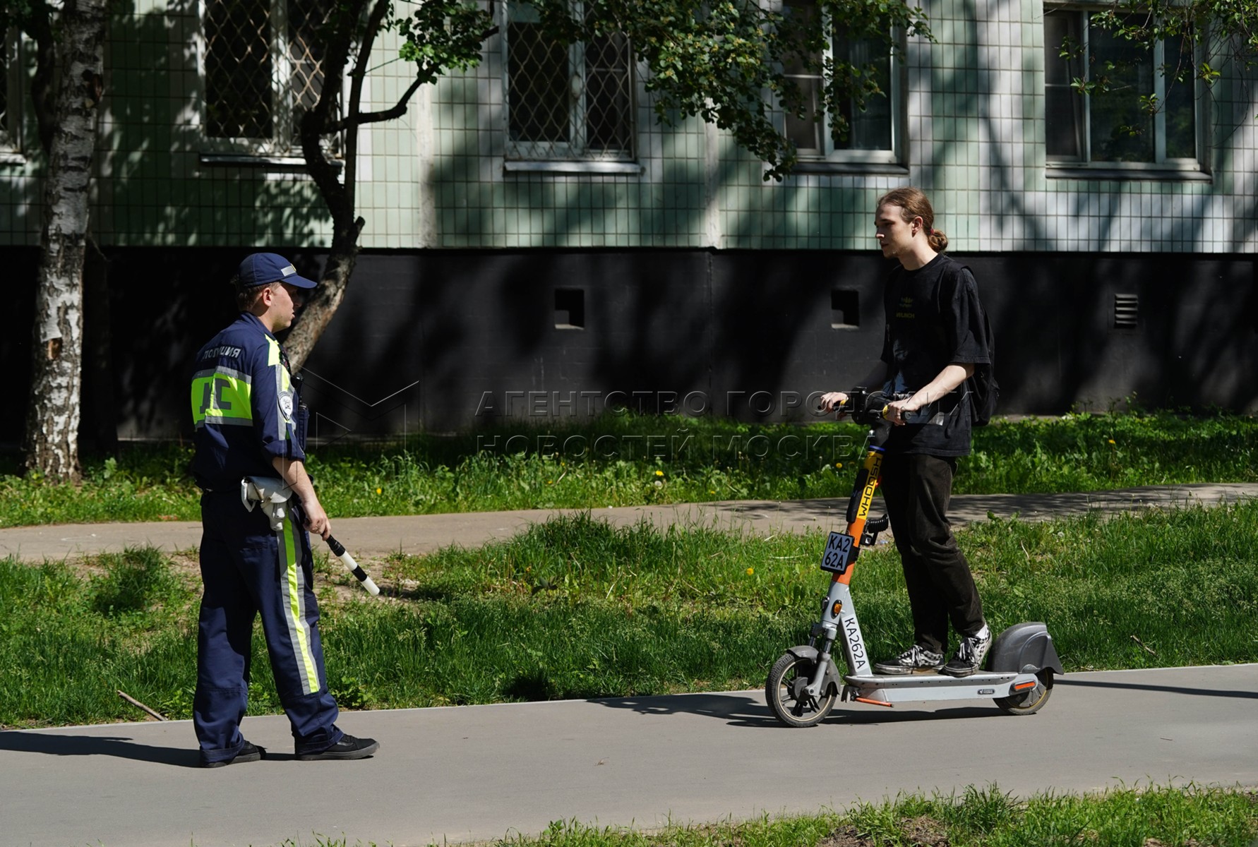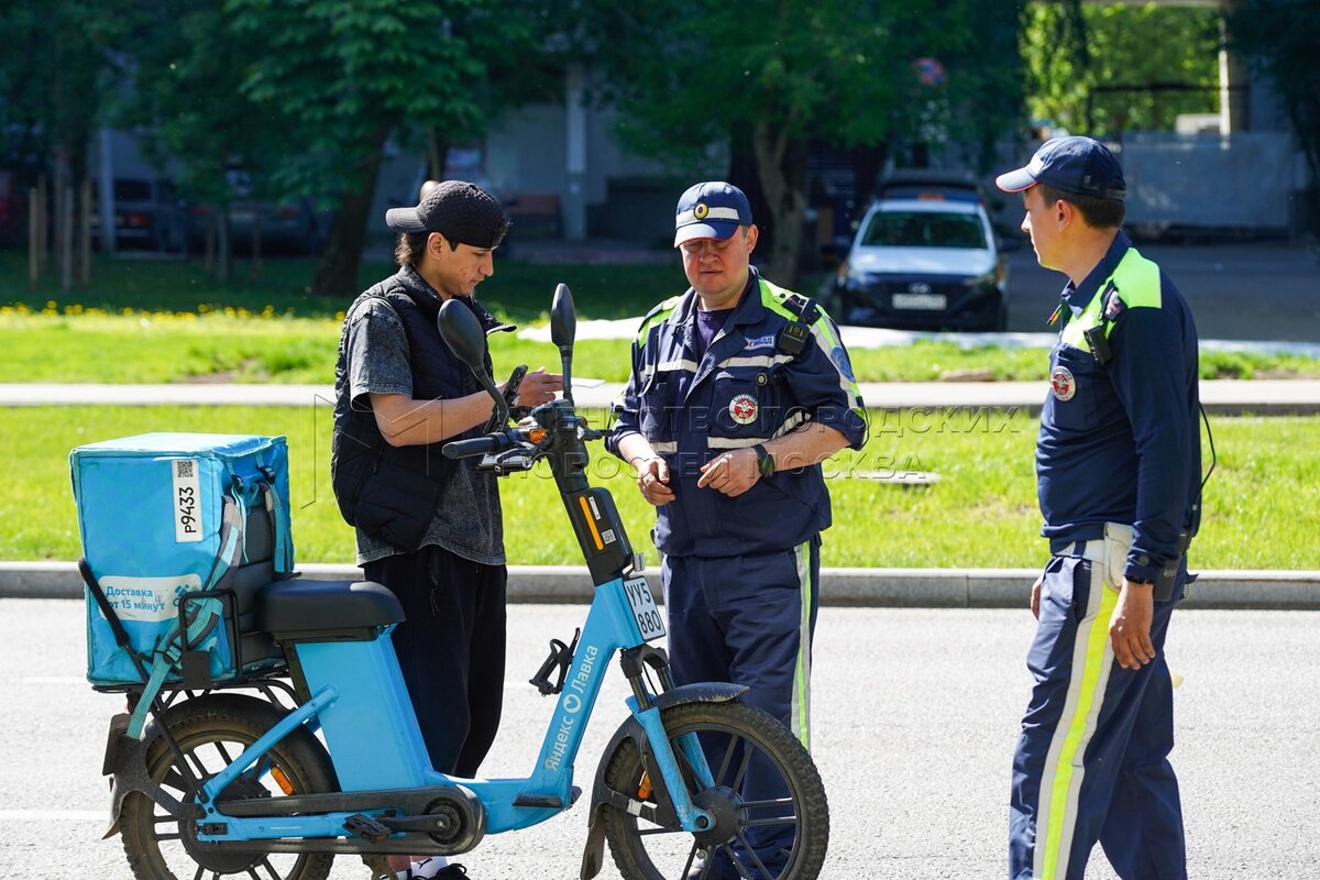 Рейд ГИБДД по проверке пользователей электросамокатов и велосипедов на ул. 800-летия Москвы.