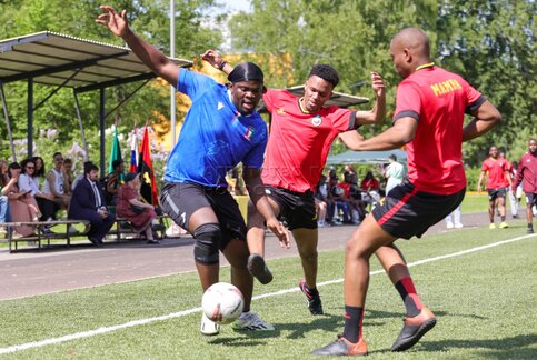 • Описание: Турнир по мини-футболу «Кубок 62-летия Африканского союза», в котором принимают участие представители посольств стран-участниц Африканского союза, на территории школы № 875 в ЗАО.