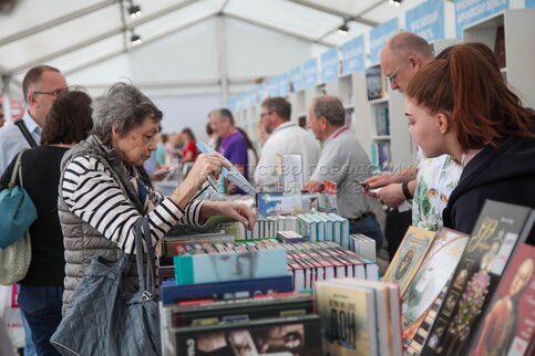 Посетители и участники XI Книжного фестиваля «Красная площадь» в Москве.