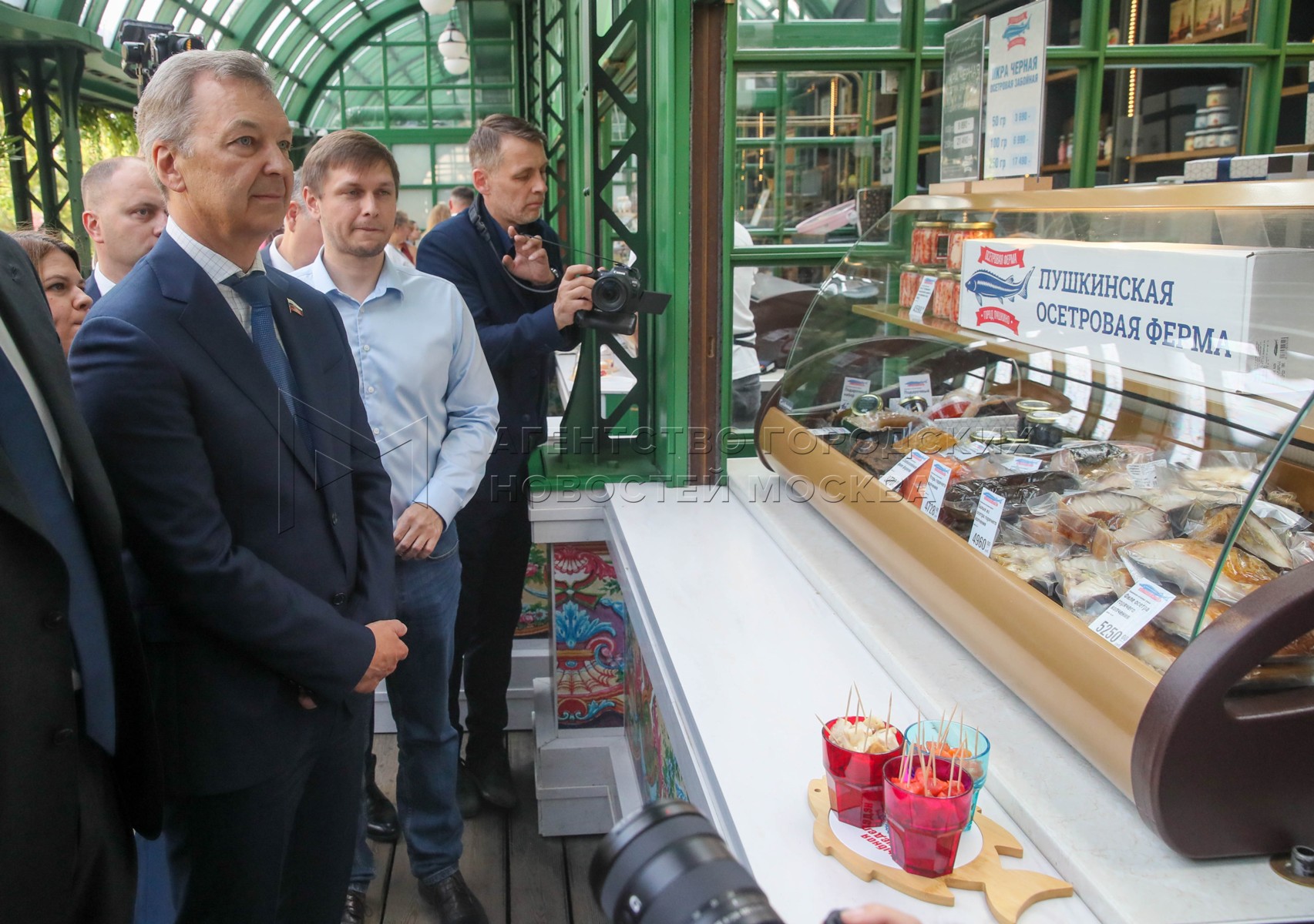 Первый заместитель председателя Совета Федерации Андрей Яцкин и основатель магази...