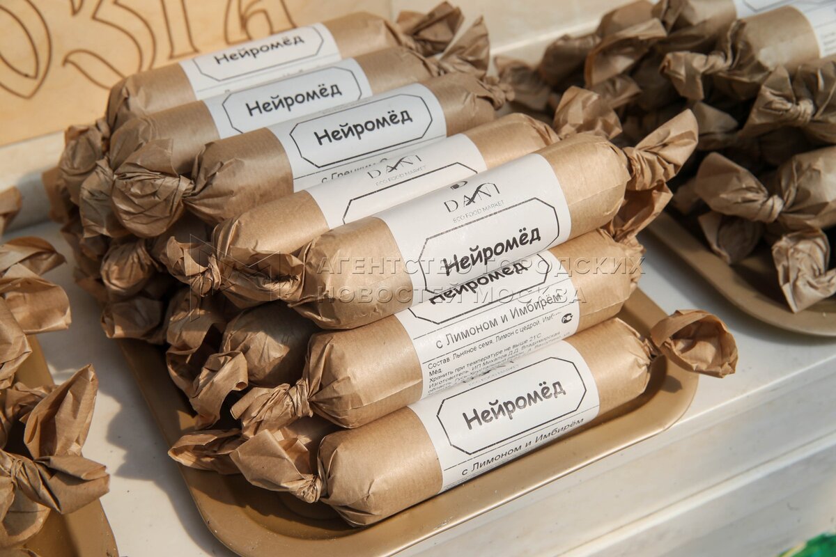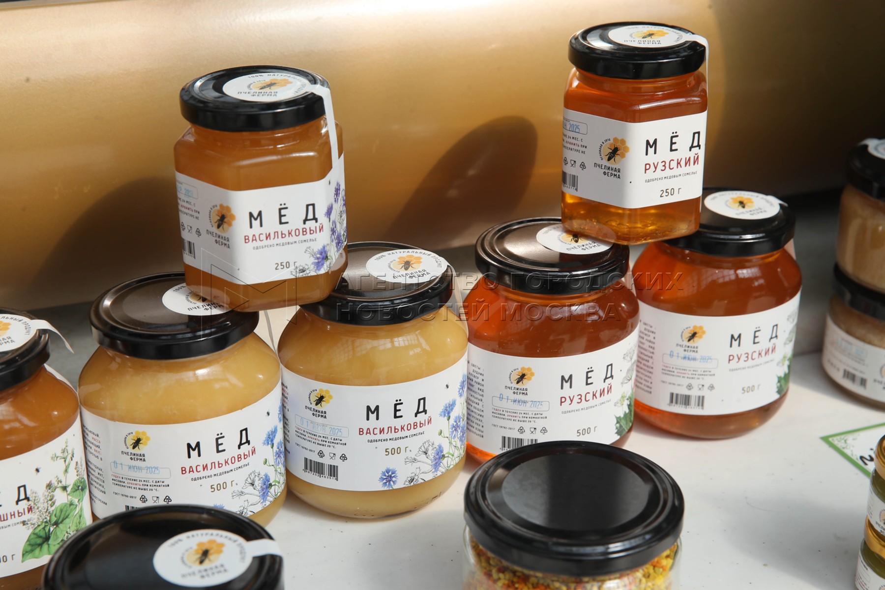Продукция с медом. Открытие на Тверской площади ярмарки фермерской продукции, при...