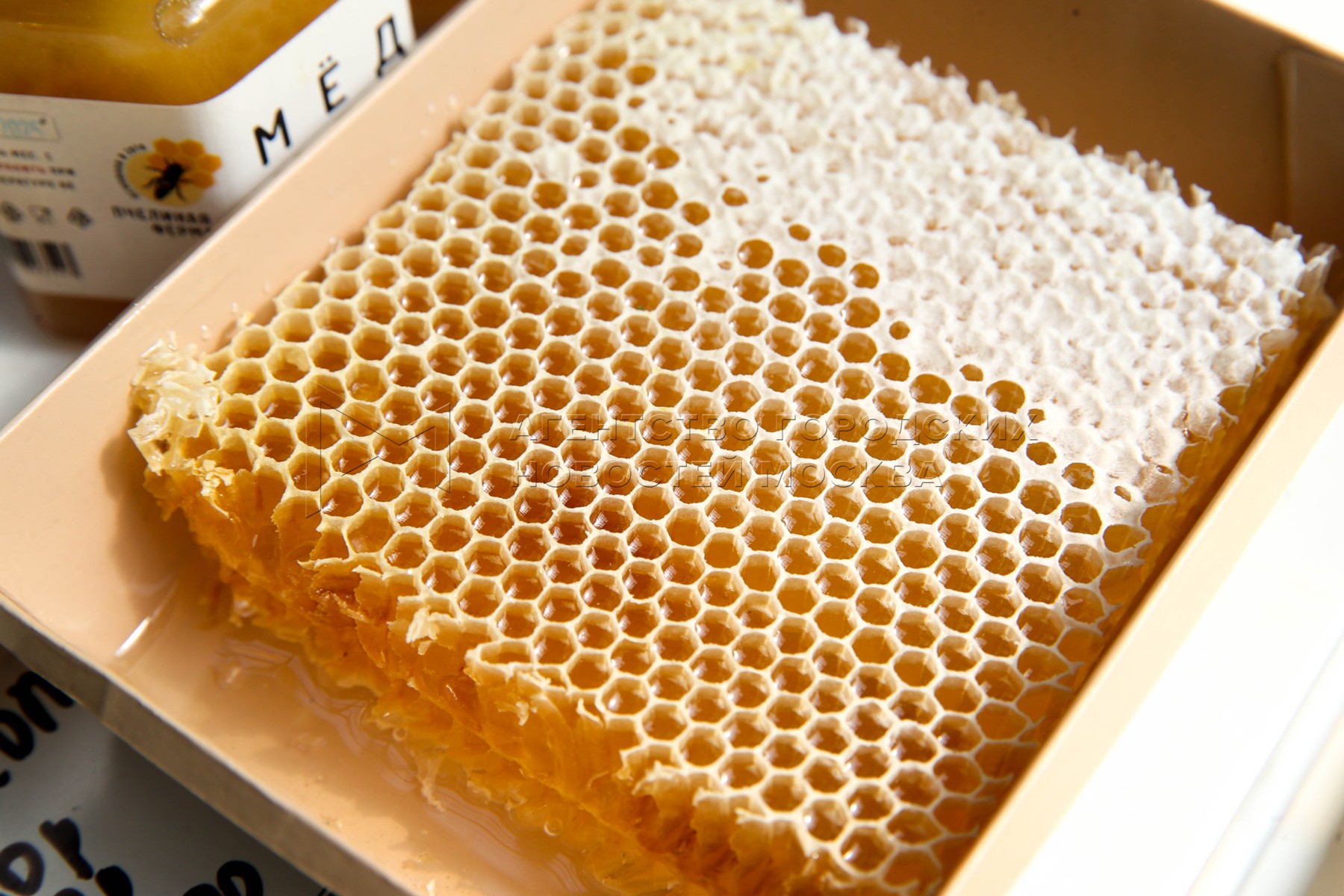 Мед в сотах. Открытие на Тверской площади ярмарки фермерской продукции, приурочен...