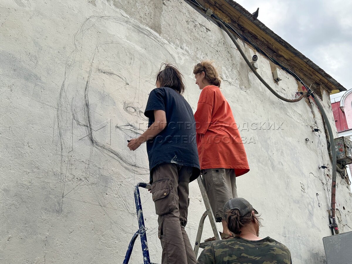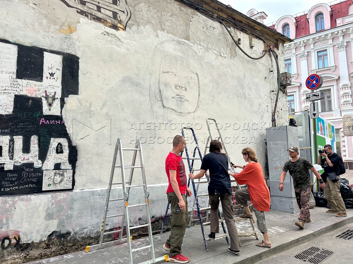 • Заголовок: Художники реставрируют стену Цоя на Арбате к его дню рождения