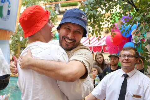 Актер Александр Олешко (справа). День мороженого в ГУМ «Артек на все 100!».