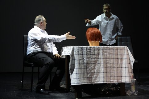Актеры Михаил Парыгин (на первом плане) и Артем Ткаченко. Премьера театральной по...