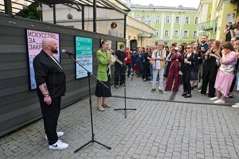 • Описание: Вернисаж выставки «Искусство за закрытыми дверями. Квартирные выставки 1960–1980-х» в выставочных залах РОСИЗО в Петроверигском пер.