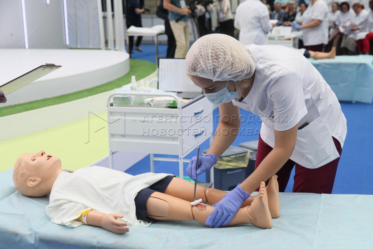 Финал конкурса профмастерства «Московские мастера» по профессии «медицинская сестра» в Гостином дворе.