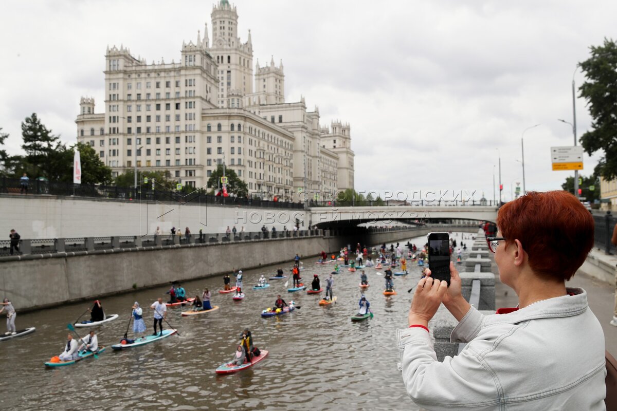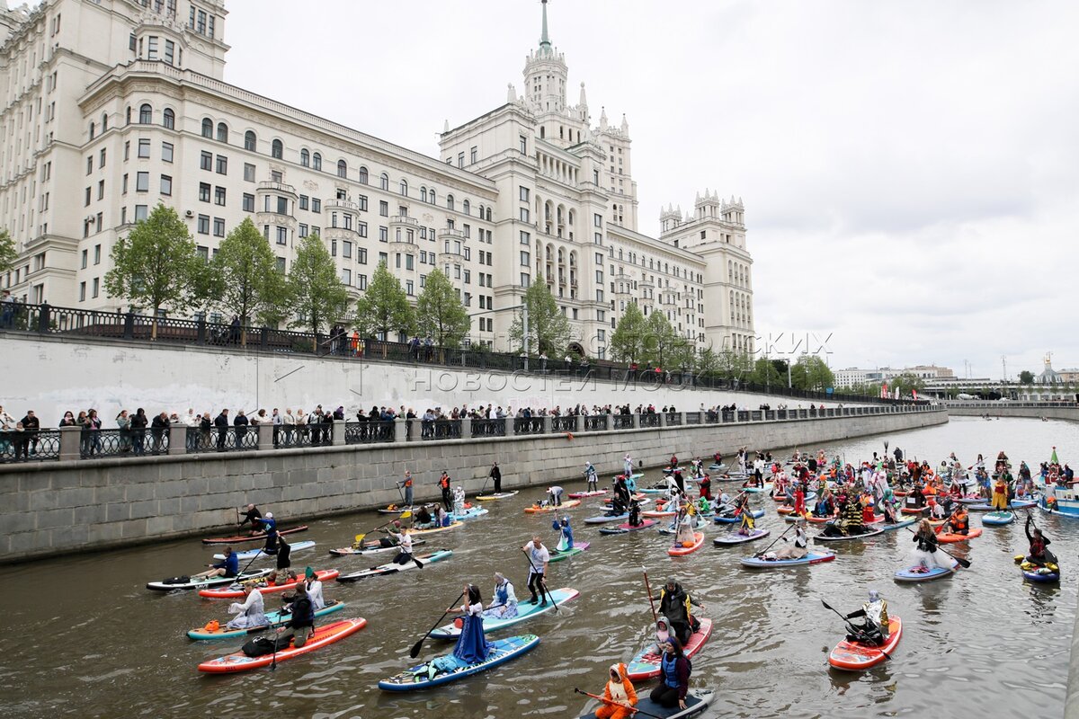 Карнавальный SUP-заплыв по Яузе в рамках спортивного фестиваля на воде «Две реки»...