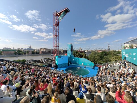 Хайдайвинг (прыжки в воду) в парке «Музеон» в рамках спортивного фестиваля на вод...