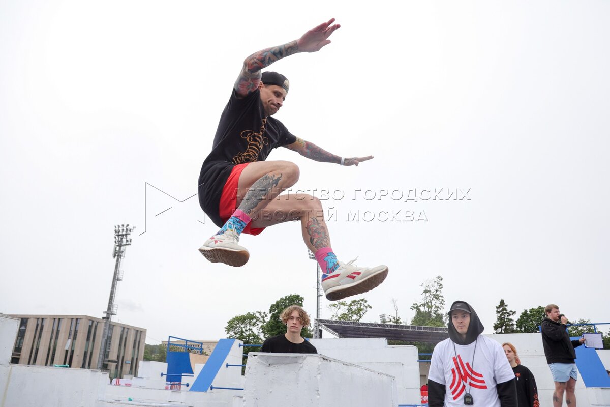 Соревнования по паркуру и воркауту в экстрим-парке в «Лужниках».