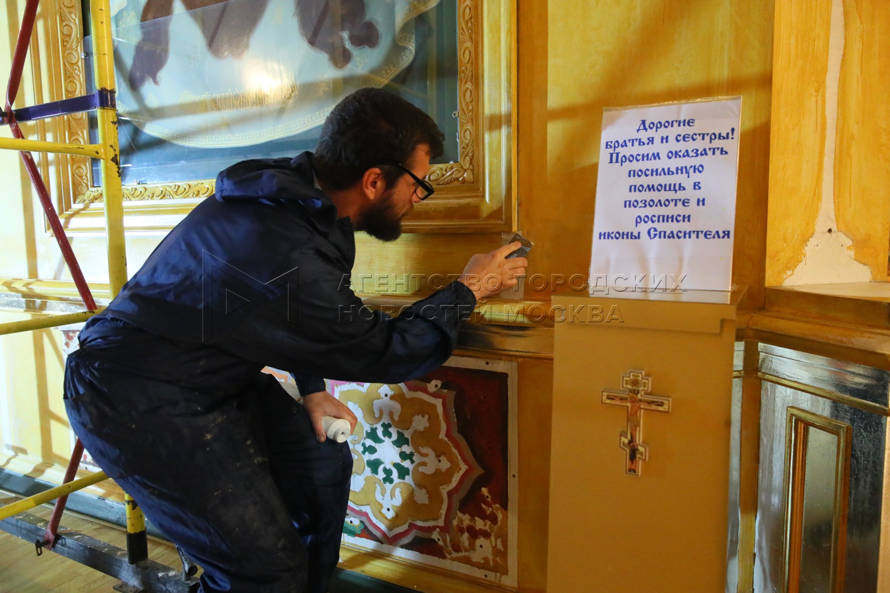 Реставрация киотов икон в храме Покрова Пресвятой Богородицы в Измайлово. В следующем году в храме запланированы масштабные реставрационные работы: перекрытие куполов крыши, реставрация фасадов.