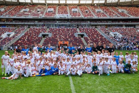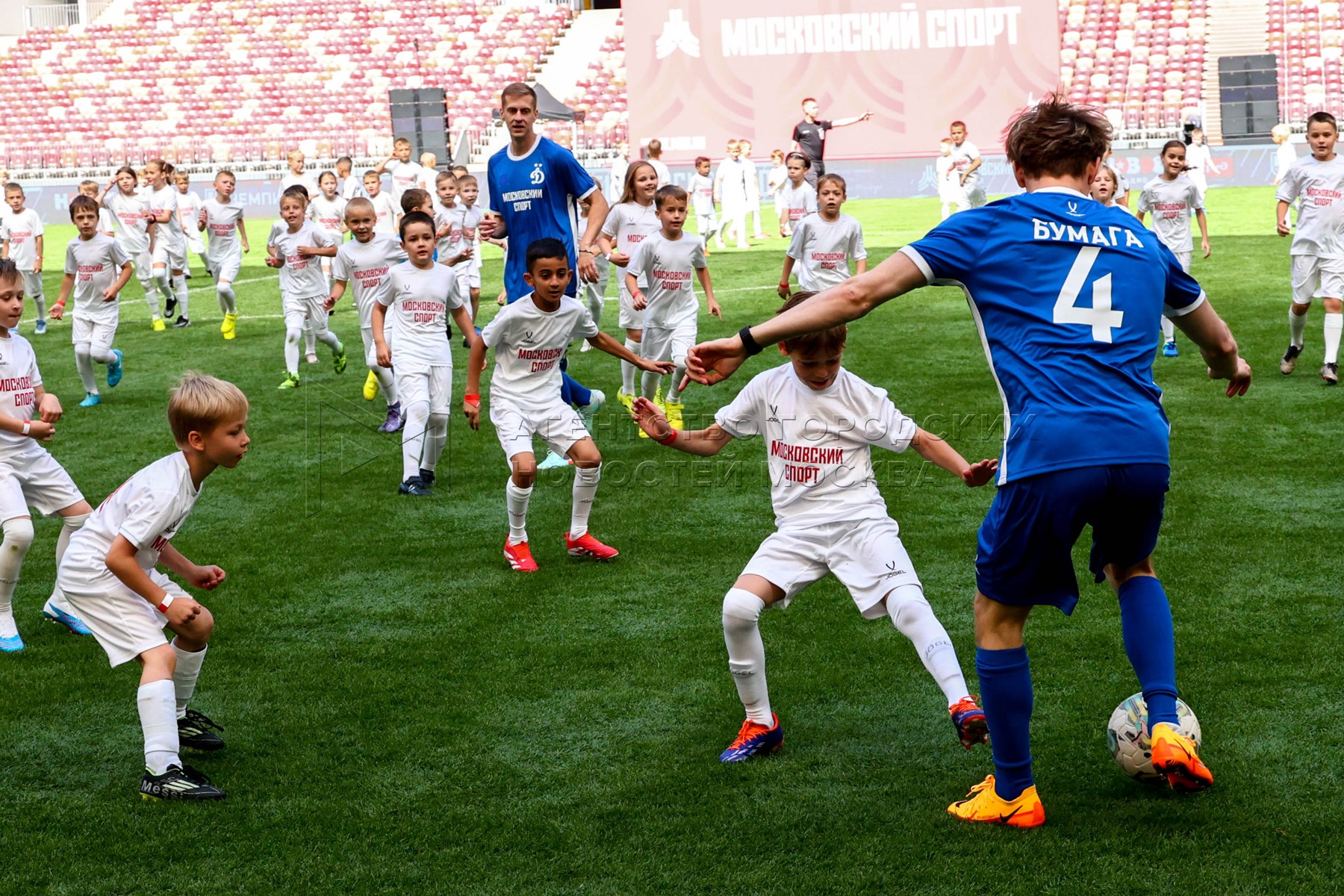 Белорусский видеоблогер Влад А4 (Владислав Бумага). Гала-матч с участием блогера Влада A4, который вместе с профессиональными спортсменами играет с командой из 100 детей, в рамках Дня Московского спорта в спорткомплексе «Лужники».