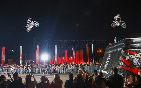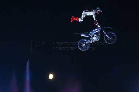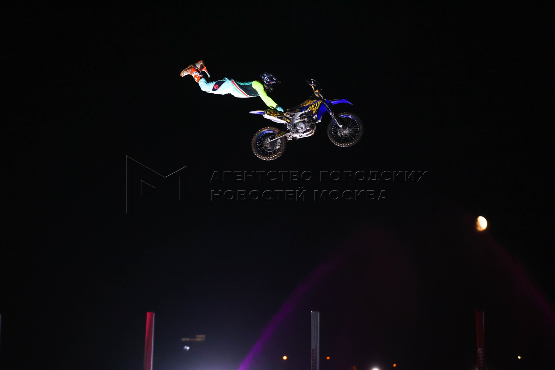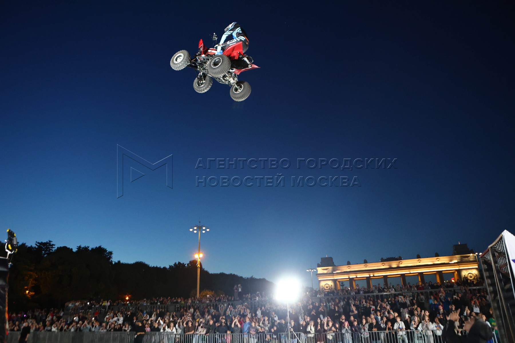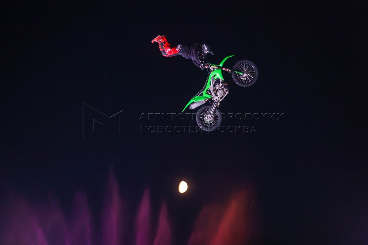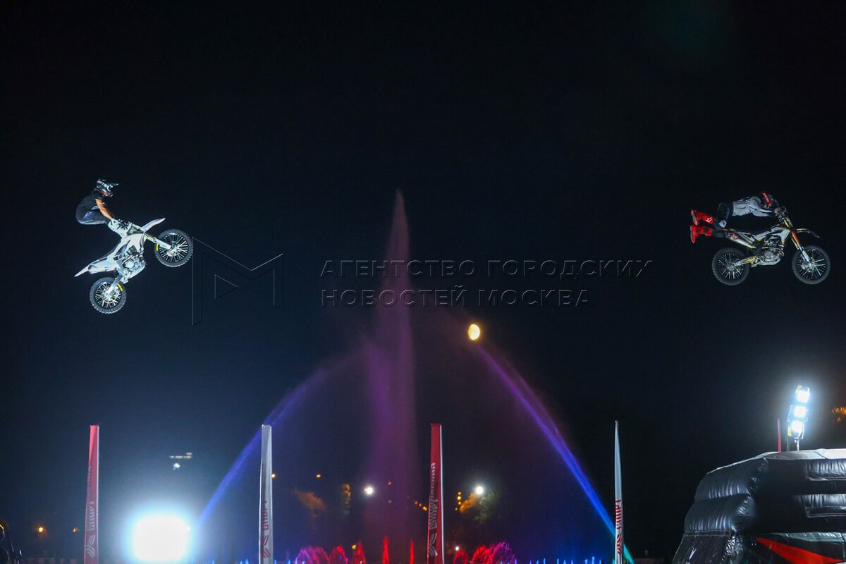 SHOW FMX Мотоциклы на фонтанной площади Парка Горького. Ночь Московского спорта в...