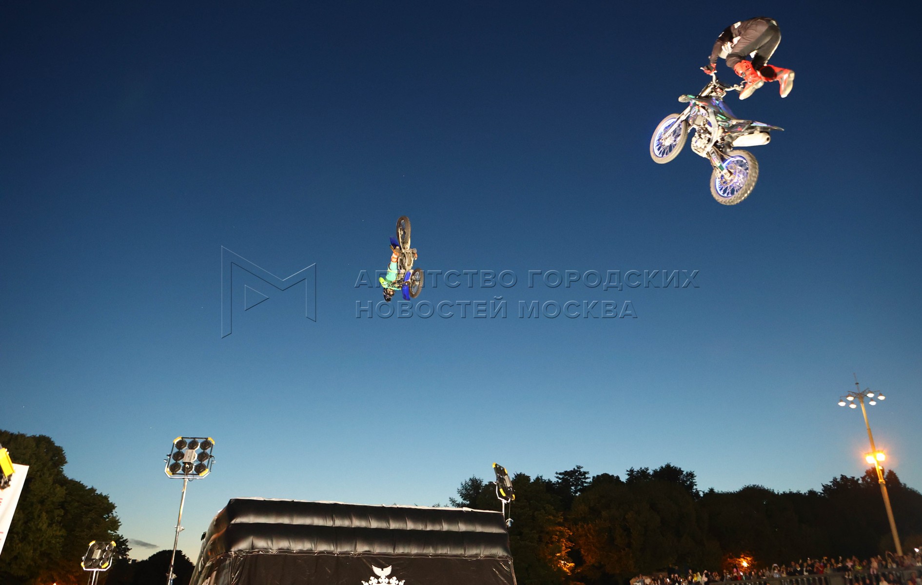 SHOW FMX Мотоциклы на фонтанной площади Парка Горького. Ночь Московского спорта в рамках проекта «Лето в Москве».