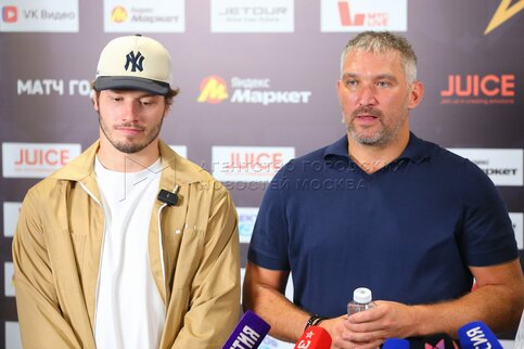 - Описание: Защитник клуба Национальной хоккейной лиги (НХЛ) «Юта Мамонт» Михаил Сергачев (слева) и нападающий и капитан клуба Национальной хоккейной лиги (НХЛ) «Вашингтон Кэпиталз» Александр Овечкин. Предматчевая тренировка в преддверии «Матча года 2025. Все звезды хоккея» в спортивном комплексе Arena Play.. Предматчевая тренировка в преддверии «Матча года 2025. Все звезды хоккея» в спортивном комплексе Arena Play.