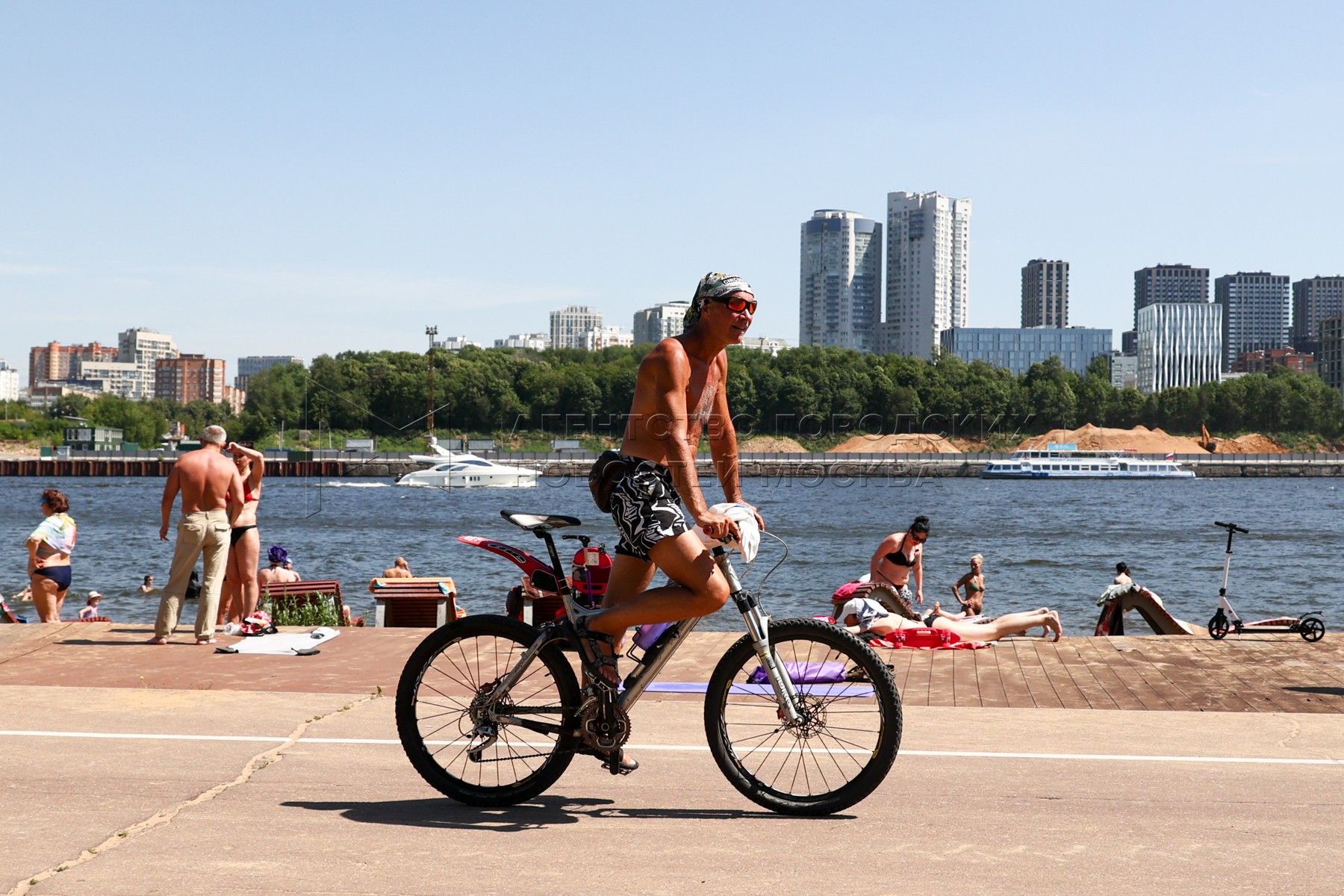 • Описание: Отдых горожан в жаркую погоду у водоемов столицы на набережной канала имени Москвы в парке «Северное Тушино».