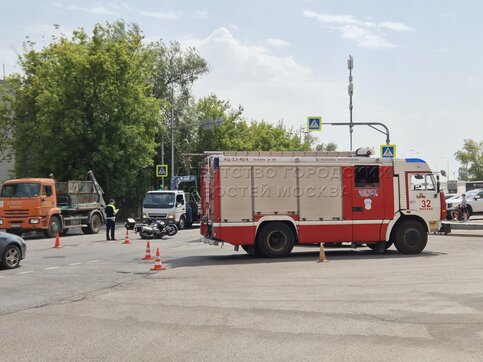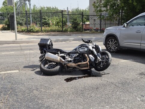• Описание: Последствия столкновения мотоцикла с автомобилем на ул. Дорожная на юге столицы.