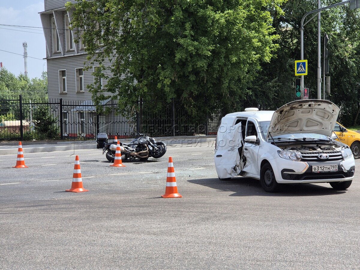 • Заголовок: Последствия столкновения мотоцикла с автомобилем на Дорожной улице на юге Москвы