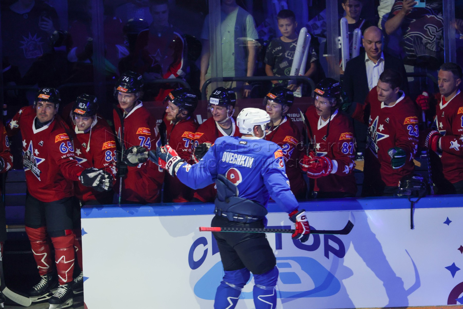 Игроки КХЛ и игрок НХЛ Александр Овечкин (на первом плане). Хоккейный «Матч года»...