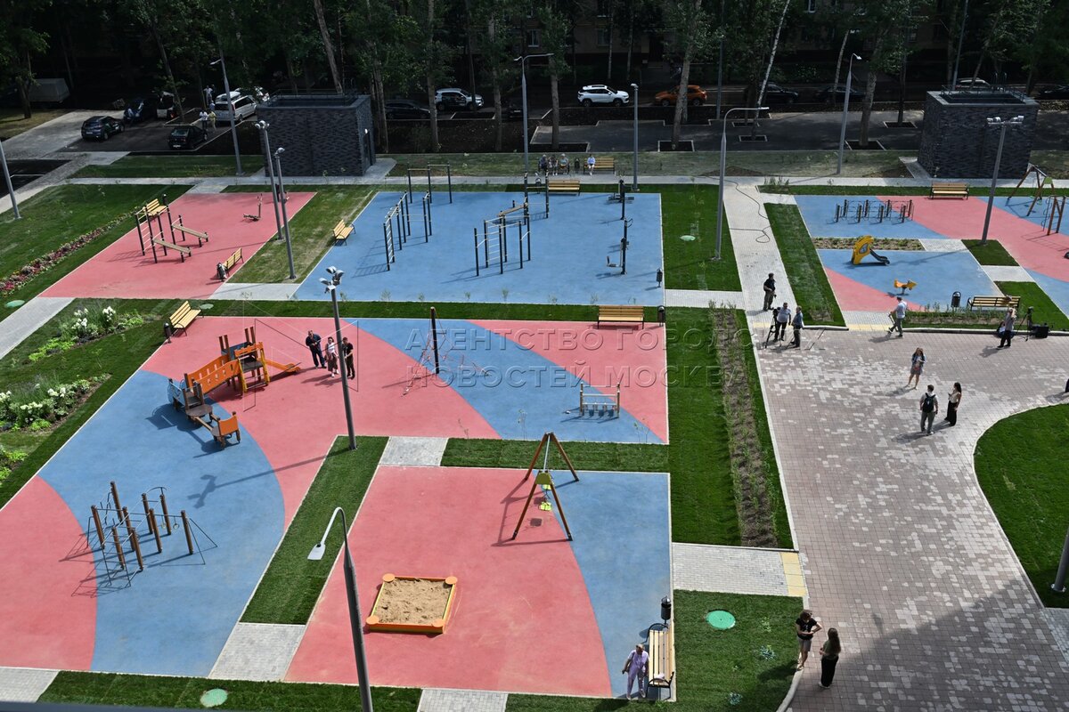 Детская площадка. Жилой комплекс, построенный по программе реновации в районе Хор...