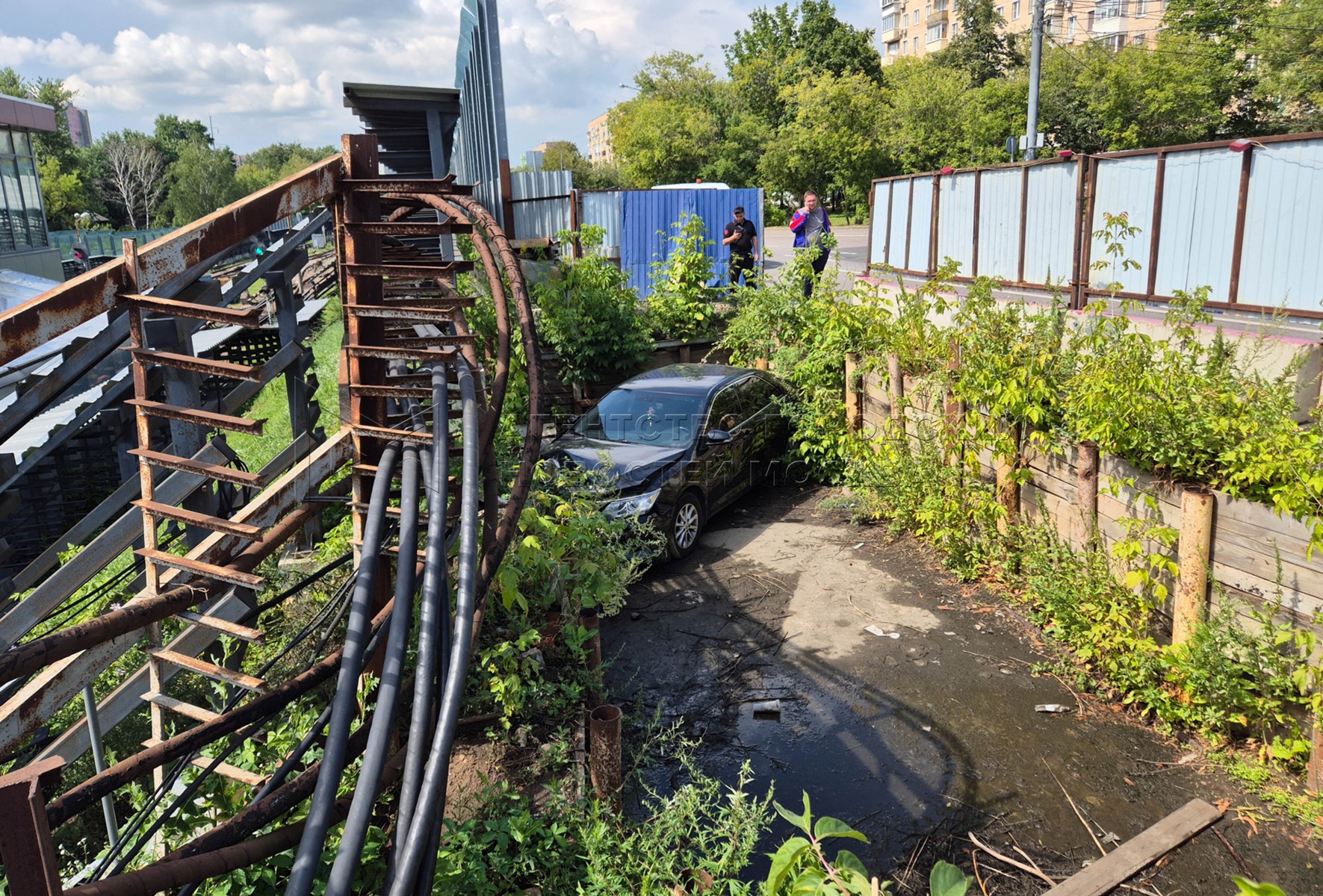 • Заголовок: Последствия ДТП с автомобилем Toyota, упавшим в котлован на западе Москвы
