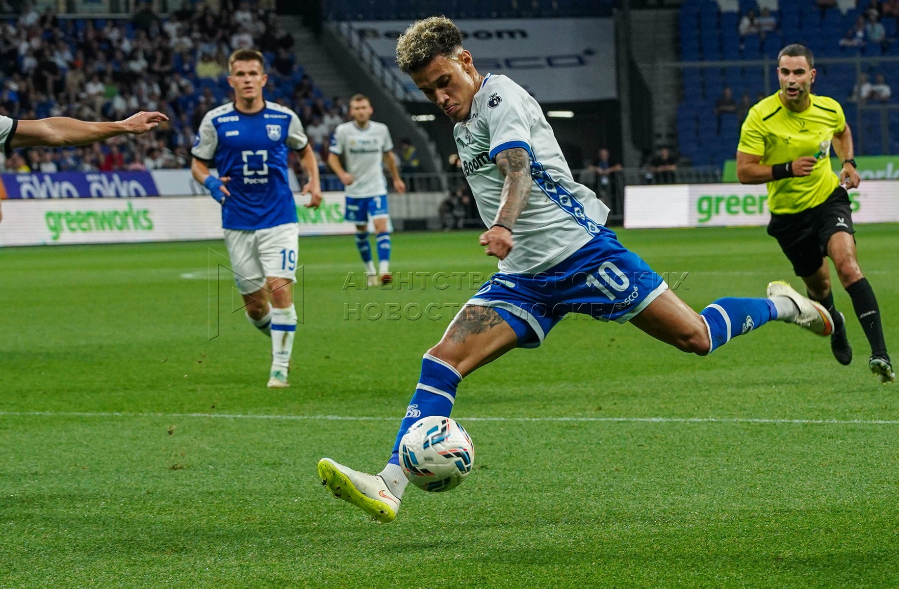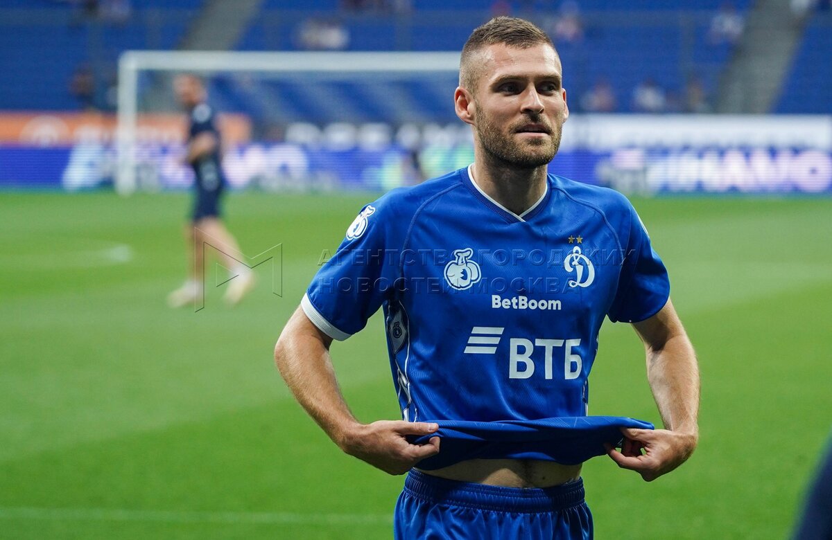 Игрок команды «Динамо» Бителло. Первый официальный матч сезона Российской премьер...