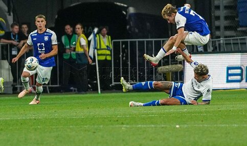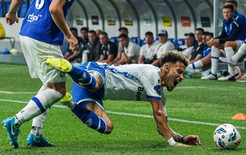 Игрок «Балтики» Йенне Тентон и игрок «Динамо» Егор Любаков. Первый официальный м...