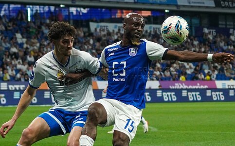 Игрок «Балтики» Натан Гассамаи игрок «Динамо» Иван Сергеев. Первый официальный ма...