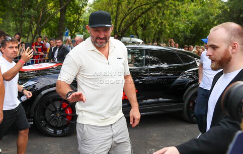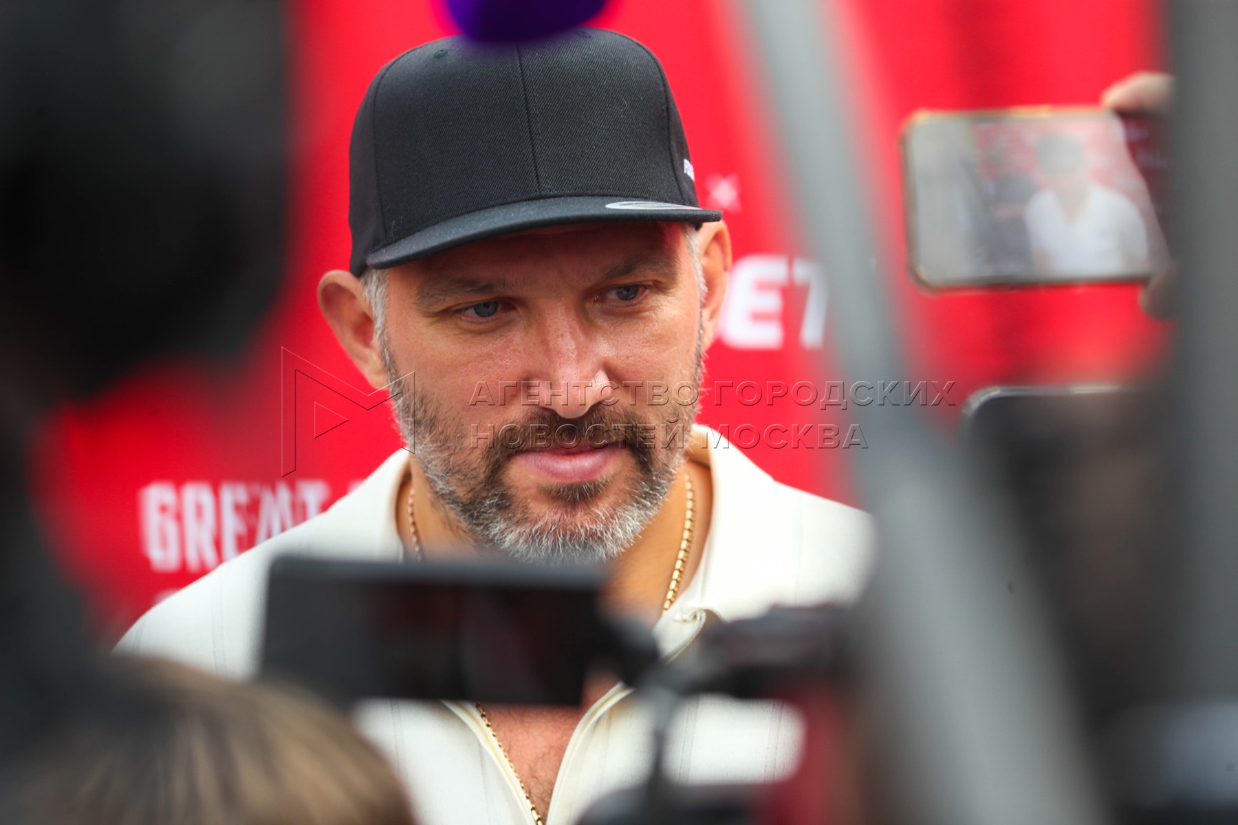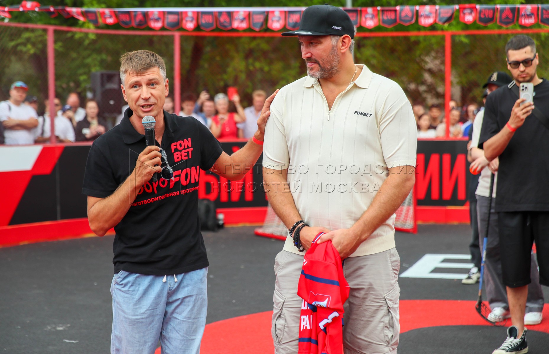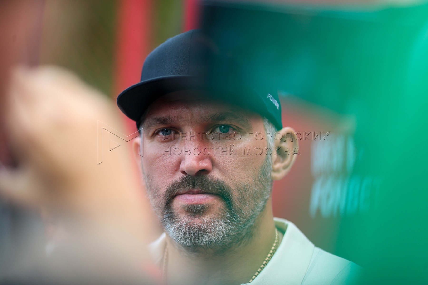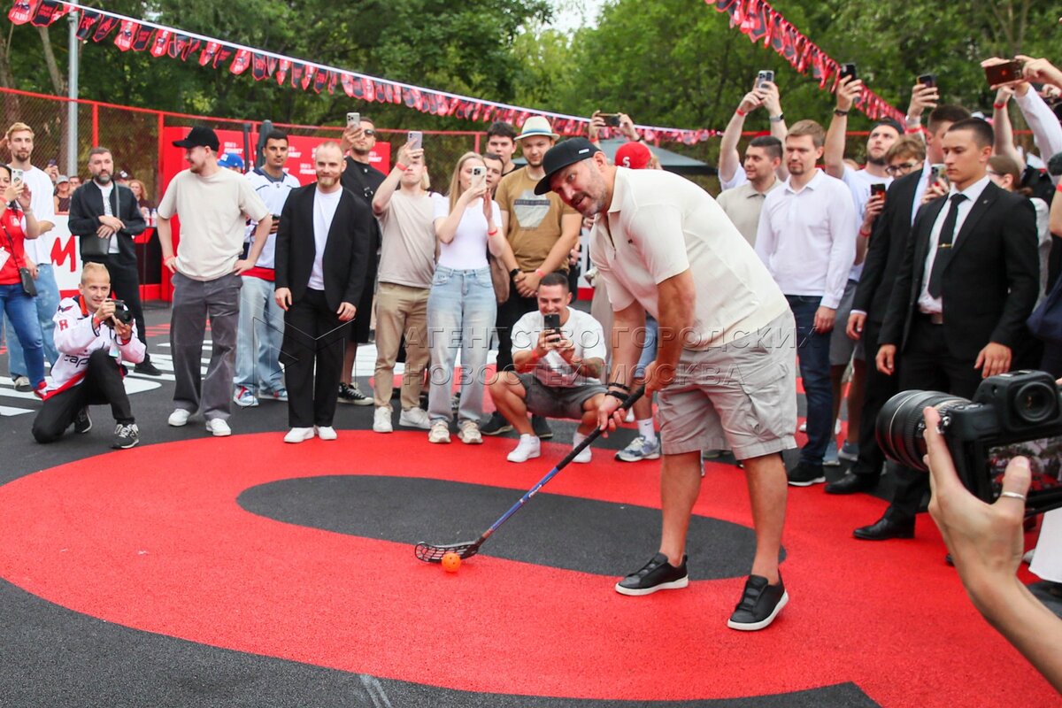Хоккеист Александр Овечкин на торжественном открытии хоккейной коробки на ул. Оне...