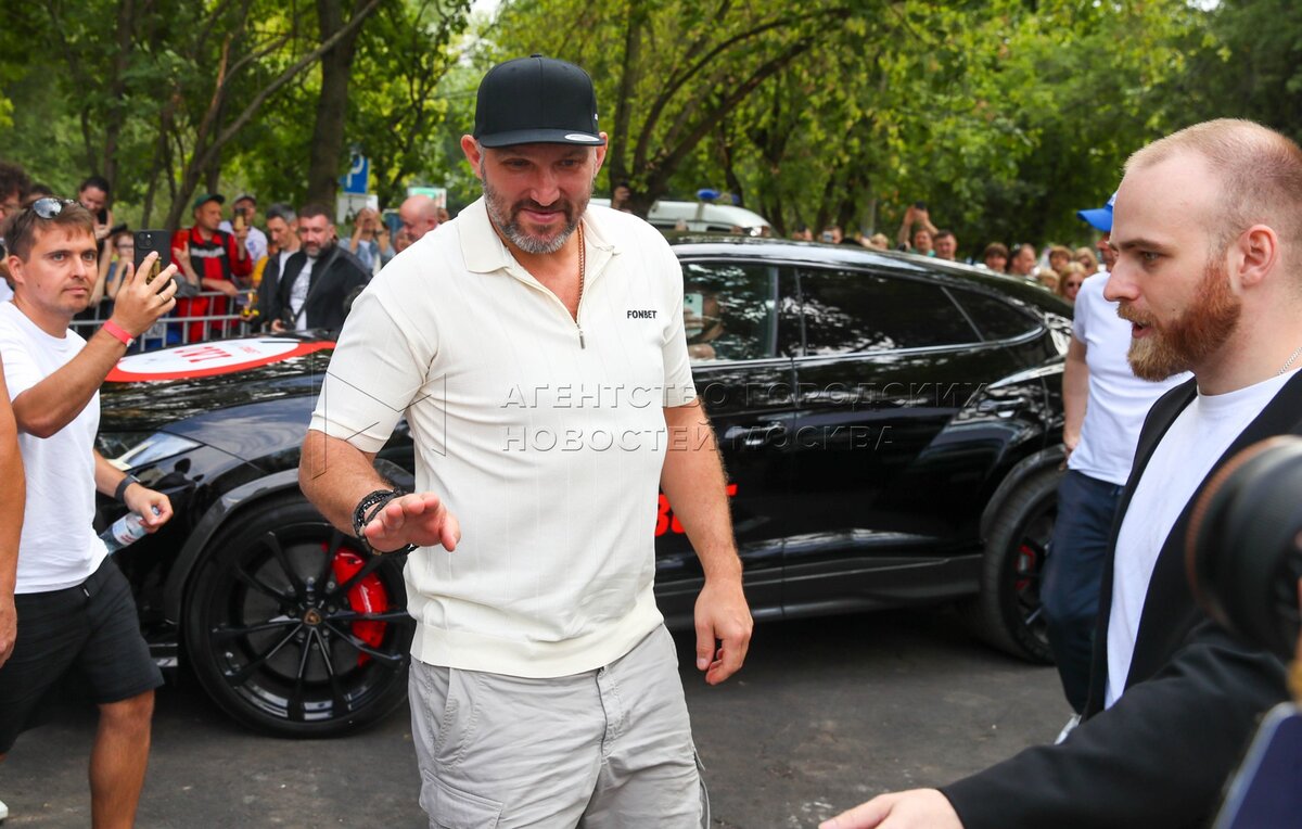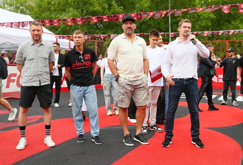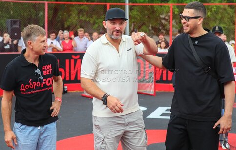 Фигурист Роман Костомаров на торжественном открытии хоккейной коробки на ул. Онеж...