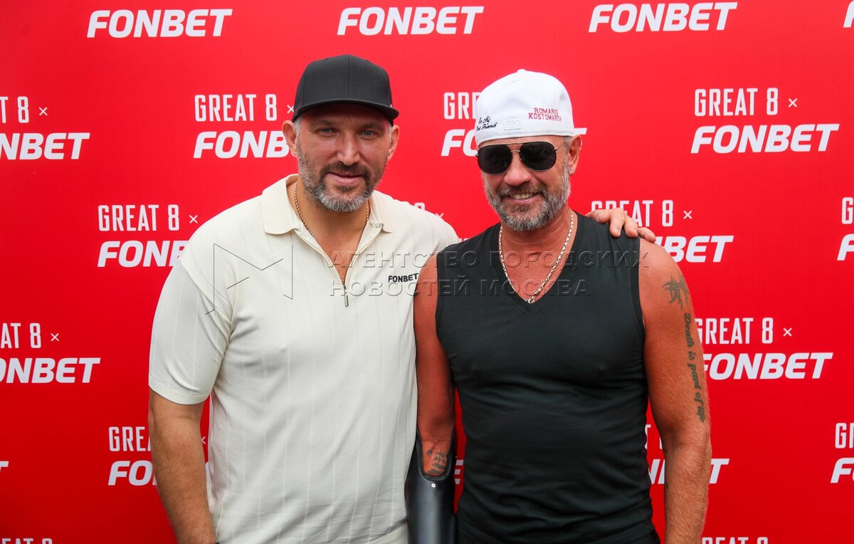 Хоккеист Александр Овечкин и фигурист Роман Костомаров (слева направо). на торже...